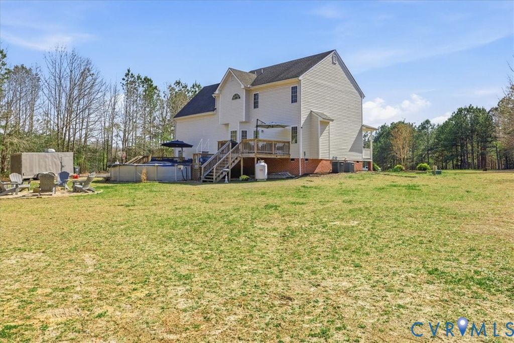 Welcome home to your own 5 acre piece of heaven! This 4 bedroom 2.5 bath house is perfect for peaceful living that is convenient to 95, 295, RT 35, and 460. Upon entering the home, you embark upon a stunning two story foyer with the formal dining room on one side and the living room on the other. The home has been upgraded throughout with fresh paint and a stunning kitchen with white cabinets, granite countertops, stainless steel appliances, and new fixtures. The kitchen opens to the spacious family room that includes a gas fireplace and double doors leading to the rear deck that is 12x14 ft. then the pool deck that is 31.5 x 17 ft. The staircase to the second level conveniently opens to the family room and the living room for ease. The second floor has the primary bedroom that includes a spacious primary bath with a separate tub and shower, double vanities, and a generously-sized closet. The other three bedrooms share the hall bath and are all expansive is size (especially the one over the garage). The rear yard is perfect for relaxing by the pool or firepit, and the open area will allow for any recreational ideas you can imagine. The home also features a 2 car garage with a partially paved driveway. Additional amenities include: a panel box wired for a generator, new water filtration system, wifi thermostat, and rural band internet. HVAC and Water Heater are new.
