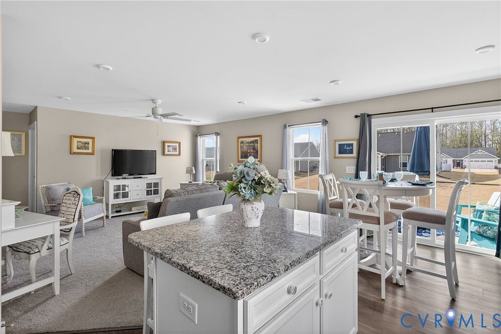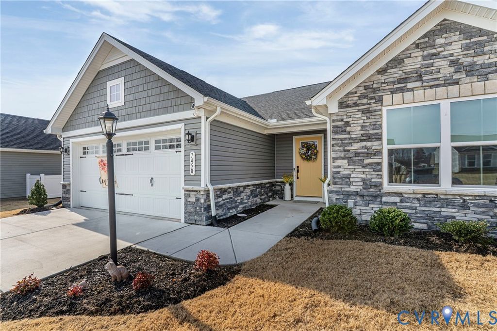 Welcome to The Groves at New Kent Estates, a premier active adult community designed for connection, convenience, and low-maintenance living. Enjoy a true resort-style lifestyle with a clubhouse, fitness center, zero-entry pool, pickleball and bocce courts, walking trails, and a full calendar of social events led by an on-site activities director. Located in the heart of New Kent, you're just minutes from three local wineries, Viniterra golf course, Colonial Downs, and I-64, with quick access to Richmond International Airport and Colonial Williamsburg"”perfect for easy travel and weekend plans. Inside, 7458 Southamptonshire Way offers bright, single-level living with an open layout, a kitchen featuring a large island and breakfast bar, and a spacious primary suite with walk-in closet and ensuite bath with dual vanities and walk-in shower. Enjoy your private rear patio for morning coffee or evening unwinding, and with lawn care included, you can spend more time enjoying everything this vibrant community has to offer. This isn't just a move"”it's a lifestyle upgrade!