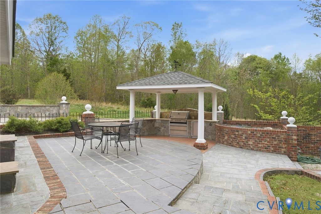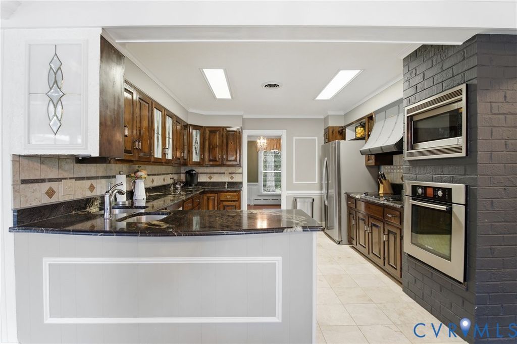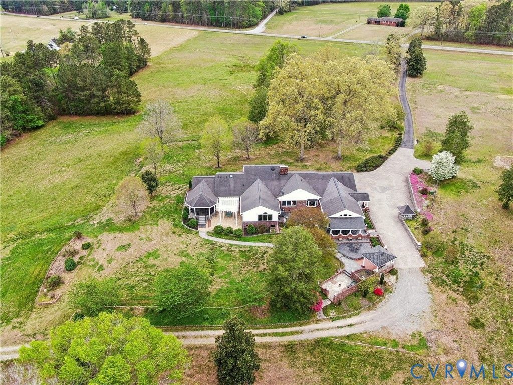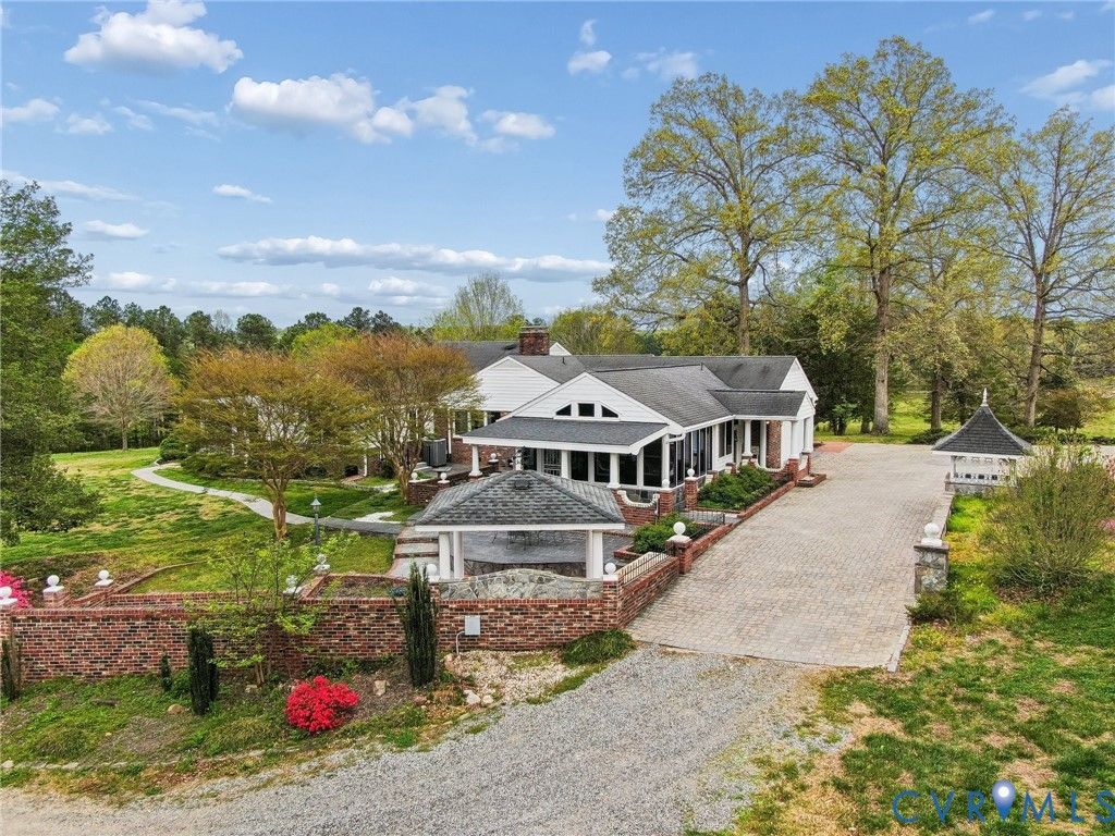 An exquisite brick retreat where classic architectural detail meets modern outdoor entertainment! This expansive brick rancher invites you into a lifestyle of comfort and sophisticated detail, featuring gleaming hardwood floors, elegant crown molding, and wainscoting that flows throughout the main level. The heart of the home is a chef-inspired kitchen equipped with marble countertops, a professional stove hood, and a convenient wall oven. Whether hosting formal dinners in the dining room by the wood-burning fireplace or enjoying a quiet morning in the sun-drenched breakfast nook featuring a large bay window, the layout caters to every occasion. The primary suite serves as a private retreat with private access to the outside, an ensuite bathroom, and an additional vanity sink. Two secondary bedrooms offer ample space with double closets and adjoining bathrooms. Relaxation is easy in the living room centered around a gas brick fireplace, or within the multiple sunrooms that provide peaceful views of the grounds. For those who work from home, the dedicated office space features its own private deck access. Downstairs, the full basement provides a massive family room and an incredible amount of storage. The exterior is an entertainer's dream, boasting a stone-paved driveway that leads to a two-car garage. A stone pathway meanders through the side and backyard, connecting a covered grill station, a secondary patio, and a charming pergola with a built-in swing. Located in the heart of Doswell, you are minutes away from the excitement of Kings Dominion and the Meadow Event Park. Nature lovers will appreciate the proximity to the North Anna River and local equestrian centers, while easy access to I-95 ensures a smooth commute to Richmond or Fredericksburg. Experience the perfect balance of quiet country air and modern convenience at this Patrick Henry Road gem. Schedule a private tour and discover everything this remarkable property has to offer!
