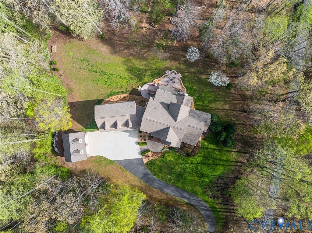 Beautiful all-brick, two-story custom home privately tucked into the woods on its own private driveway, situated on 10 serene, wooded acres fronting the South Anna River, just 20 minutes to Short Pump. This exceptional property offers the perfect blend of peaceful country living with convenient access to shopping, dining, and amenities. The first floor features a spacious primary suite with en-suite bath, an elegant living room with fireplace and custom built-ins, and a gourmet kitchen equipped with a Wolf cooktop, Sub-Zero refrigerator, and wine refrigerator. Just off the kitchen, a light-filled breakfast or family room boasts a vaulted ceiling and fireplace. A formal dining room and private home office complete the main level. Upstairs, you'll find an open loft area, a large media room with Bose surround sound and wet bar with wine/beer refrigerator, three bedrooms (including one recently finished), and a full bath. A recently replaced upstairs heat pump (April 2024) ensures year-round comfort. The home features hardwood floors, extensive storage and custom built-ins, plantation shutters, and a wine room in the basement with racking, storage, and refrigeration. The water system includes an upgraded 44-gallon pressure tank (August 2024). Outdoor living includes a screened porch and a two-level paver patio off the walkout basement. Landscaping improvements include added stonework (May 2025), professional power washing (October 2025), and cleared wooded trails leading to the South Anna River. Additional features include an attached three-car garage, detached two-car garage with workshop and attic, emergency generator, storage areas, and walk-up attic. A rare opportunity to own a private riverfront retreat with luxury features and modern updates in a secluded yet accessible location.