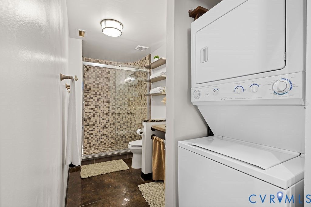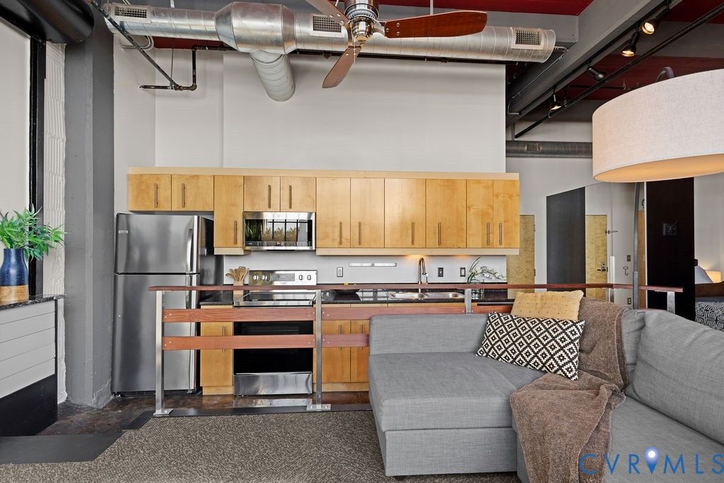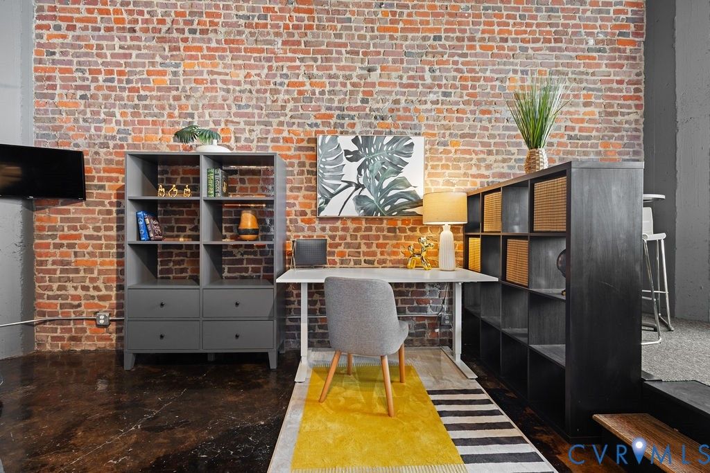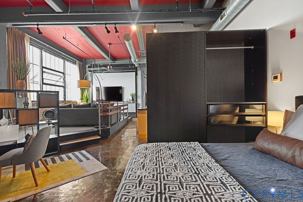 Welcome to urban living at its finest! This top floor unit in the historic Emrick Flats Building has been tastefully updated and thoughtfully designed to maximize lifestyle, functionality, and space. Converted from The Emrick Chevrolet Building into condos by Walter Parks Architects in 2008, this flatiron shaped building is a true landmark of Jackson Ward and Richmond History. This condo unit comes fully furnished, and is truly turn-key from the inside out. A raised living room with custom TV console and sofa-bed sectional provides the perfect area for relaxation, entertaining, and enjoying the sunset and city views. There is a cozy dining area, as well as an office space with desk and bookshelves. The sleek kitchen is perfect for meal prep; with maple cabinetry, granite countertops, and newer stainless steel appliances. The bedroom area comfortably accommodates a modern queen sized bed, nightstands, and additional dual sided wardrobe system in addition to a large walk-in closet with custom closet system. The bathroom has an oversized curved shower, wall shelving, a mirrored medicine cabinet for extra storage, and a stack washer/dryer making laundry a breeze. This fourth floor unit is also close to the rooftop deck, and has the privacy of no direct neighbors on either side of the unit. Extensive updates and renovations include: living room with built-in TV console and LED accent lighting, HVAC system (2020), tankless hot water heater (2020), new air handler (2024), newer stainless steel dishwasher, stove, and microwave, remote controlled ceiling fans, and is offered completely furnished- just bring your suitcases! The HOA fee also covers basic internet, secure entry, private basement storage unit, trash, and recycling. Located on the Pulse line, close to VCU/MCV, Quirk Hotel, Common House, and some of the best Richmond area art galleries and restaurants- don't miss this opportunity to make this fully-outfitted condo your new home or pied-Ã -terre. Schedule a tour today!