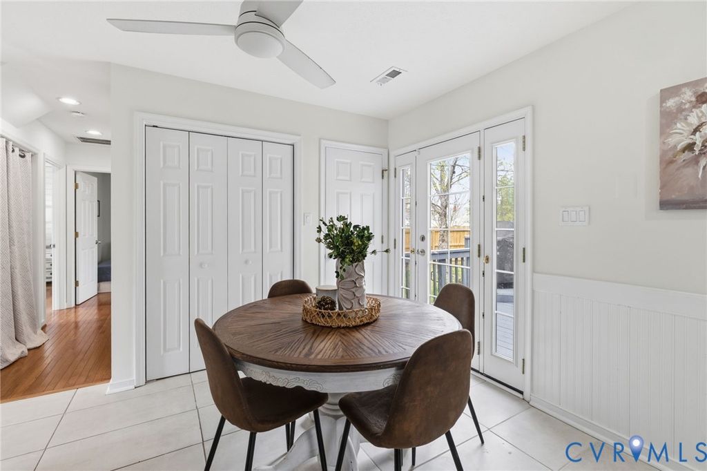 Welcome to 846 Tavern Green Rd in the conveniently located Ayers Tavern neighborhood of Glen Allen, where thoughtful updates, functional living space, and inviting outdoor amenities come together at an incredible value. This charming 1.5-story Cape offers 4 bedrooms and 2 full baths across 1,296 square feet, making it an ideal option for first-time buyers, downsizers, or anyone seeking low-maintenance living with modern touches. Step inside to find a bright living room with hardwood floors and overhead lighting, creating a comfortable space to relax or entertain. The kitchen has been refreshed with painted cabinetry, butcher block countertops, updated hardware, a stylish backsplash, and newer appliances including a dishwasher (2023) and microwave (2024), while the eat-in area provides a cozy dining space with easy access to the backyard and deck. Both bathrooms have been tastefully updated within the last five years, featuring modern tile work, fixtures, and finishes, and the water heater was replaced in 2023 for added peace of mind. The outdoor space perfectly complements the home, featuring a fully fenced backyard updated in late 2024 with mature trees, a garden box, and a powered shed, along with a freshly painted deck offering built-in seating and a grilling area. A brick patio, fire pit, and rope lighting create an ideal setting for entertaining, while the EV charging station (installed 2023) and double-width paved driveway add everyday convenience. This well-cared-for home offers the perfect blend of comfort, updates, and outdoor enjoyment in a convenient Glen Allen location.