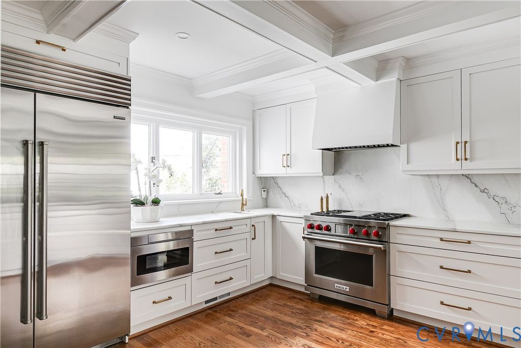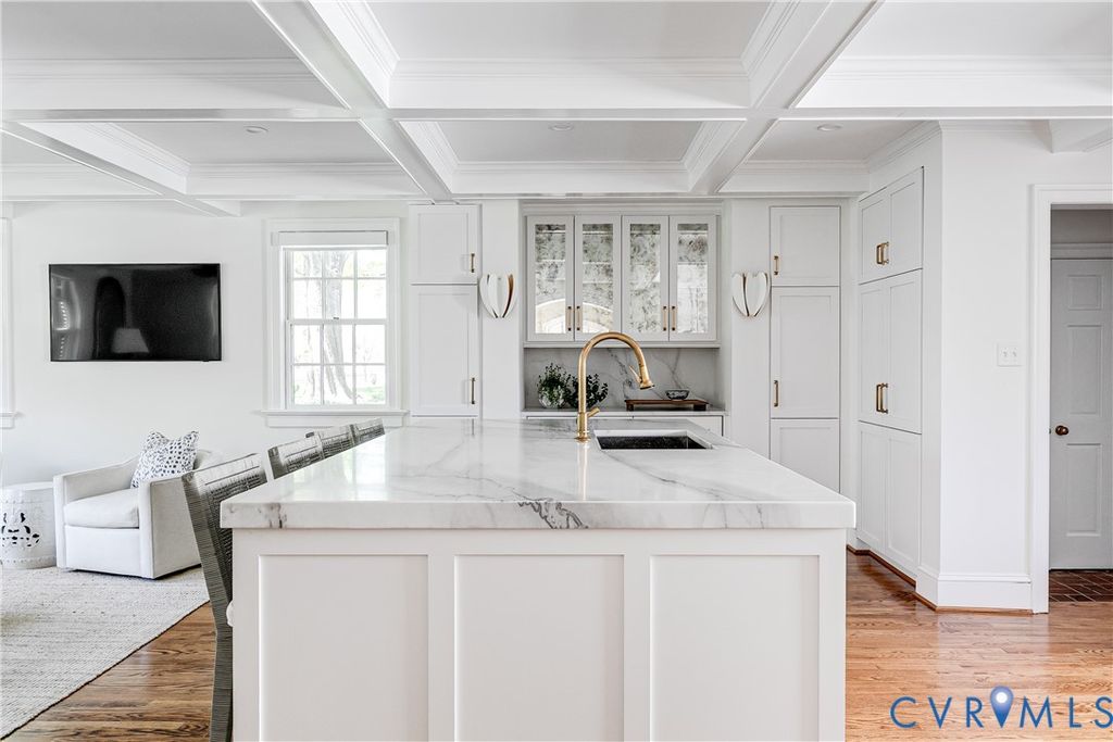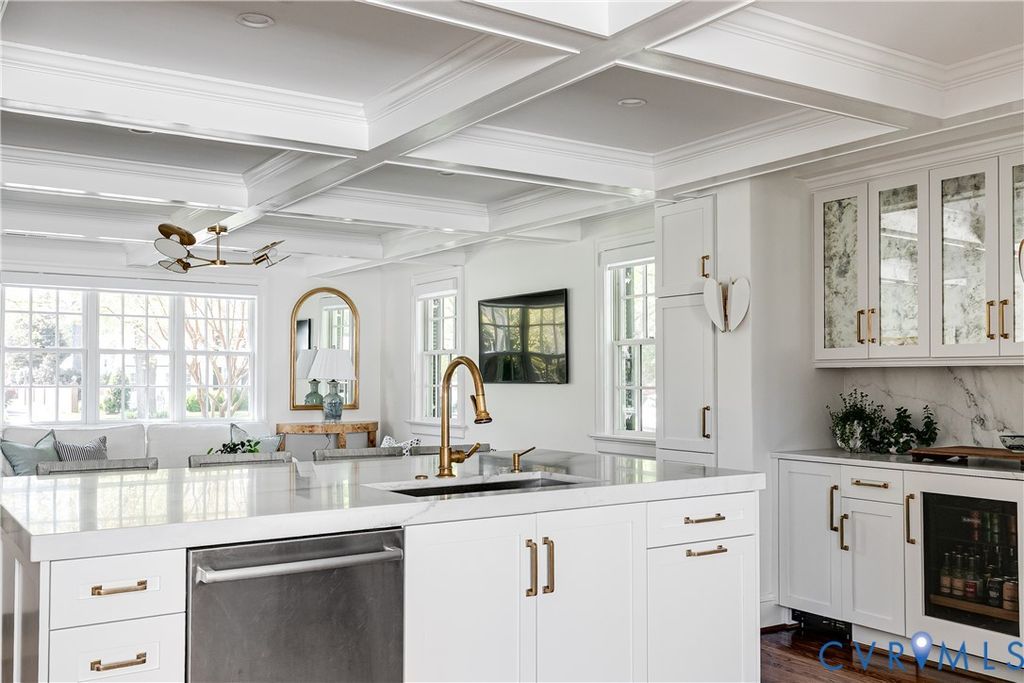 Experience the perfect mix of historic charm and modern luxury at 4306 Dover Road. This stunning 4,490 sq. ft. Brick Dutch Colonial is perfectly situated on a large flat lot in Richmond's highly sought-after Windsor Farms neighborhood. Step into a gorgeous foyer featuring a front-to-back view that fills the home with natural light, hardwood floors and wide arched openings to elegant formal dining and living rooms. The expanded kitchen/family room was completely renovated in 2021 and designed by Dana McKenna Designs. The kitchen features marble countertops, high-end appliances and custom bar with designer lighting. The charming mudroom with custom built-in lockers and laundry is the perfect drop zone off the attached 2 car garage. A cozy office with built-ins, sunroom and powder room complete the first floor. On the second floor, there are 4 bedrooms and 3 renovated full baths, including a primary suite. There are additional laundry and a back staircase. The exterior features a brick patio perfect for outdoor dining and relaxation. Beautiful landscaped yard, a stately circular driveway and a rare attached 2-car garage. Enjoy the best of both worlds: the quiet elegance of Windsor Farms with the vibrant energy of the city just steps away. You are within walking distance to Carytown and near the premier shops and dining at Libbie and Grove!