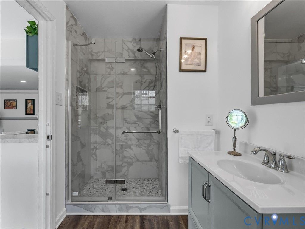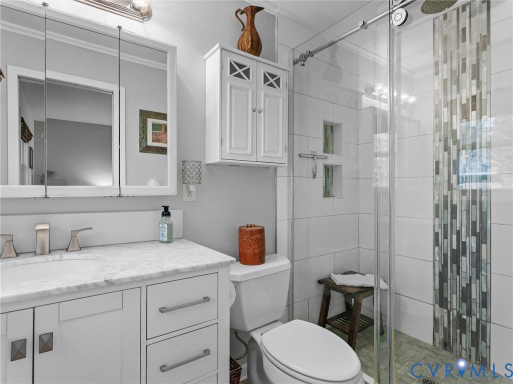 Waterfront Living on Falling Creek with Private In-Law Suite! Nestled on a wide, scenic section of the creek, this beautifully updated brick ranch offers the rare opportunity to enjoy the peaceful sound of flowing water right from your home. The exterior has been freshly painted white, complemented by a new front door for a clean, modern look. Set on a fully fenced 1.35 +/- acre lot stretching from the front yard all the way to the creek this property offers both privacy and space to enjoy the outdoors. The expanded deck surrounds the 18x34 above-ground pool, creating the perfect setting for entertaining, relaxing, and taking in the natural surroundings. Inside, the home has been thoughtfully updated with wood laminate flooring throughout the main level and laminate flooring in the basement, along with updated windows, doors, plumbing, and electrical. The kitchen features quartz countertops, and the bathrooms have been beautifully renovated with impressive tile work. A standout feature is the spacious walk-out daylight basement, offering a fully functional in-law suite with its own private entrance. This bright and inviting space includes a bedroom with walk-in closet, a full bath with a stunning tiled glass-door walk-in shower, and a kitchenette with stove and refrigerator"”ideal for multi-generational living, guests, or potential rental income. Additional upgrades around 2019/2020 include a newer roof with 25-year hurricane-rated shingles, upgraded gutters, composite decking, a potting shed, and a charming wood pergola. This is a rare blend of updated comfort, flexible living space, and peaceful waterfront setting"”don't miss it!