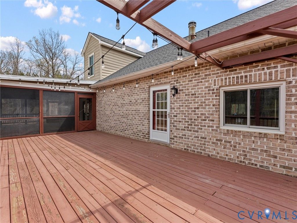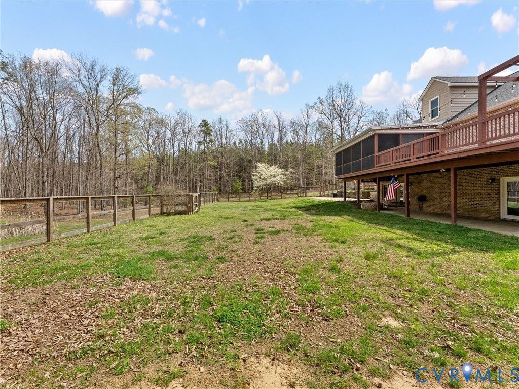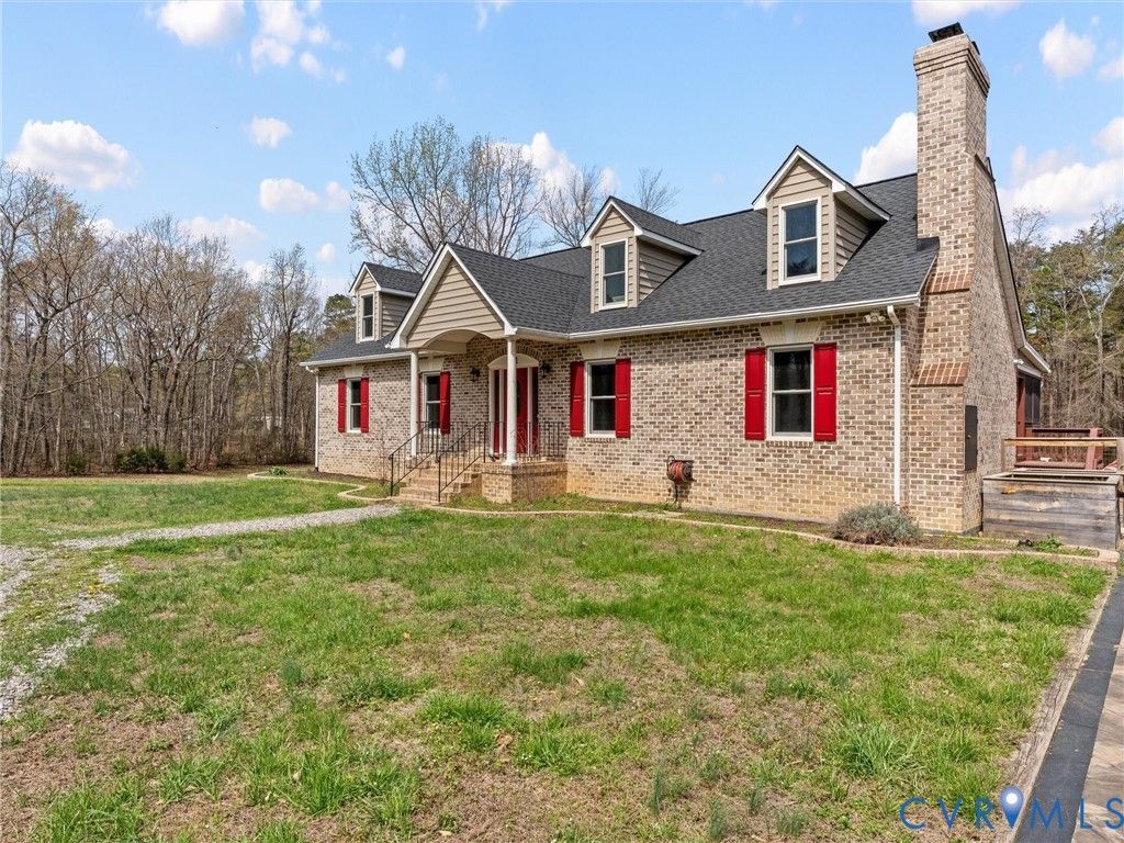 Experience the very best of country living, yet only 20 minutes from Short Pump, on this peaceful 4.68 acre property, wide-open views, modern comforts, and thoughtful craftsmanship come together seamlessly. This all-brick Cape offers over 4,000 sq ft of inviting living space, enhanced by a long list of quality upgrades designed for comfort and style. Inside, you'll find random-width hickory hardwoods throughout the first floor, and brand-new Renewal by Andersen windows and doors (2023) that bring warmth and natural sunlight to every room. The welcoming foyer opens to generous formal rooms perfect for gatherings, while the beautifully updated kitchen boasts NEW quartz countertops, stainless steel appliances, Maple cabinetry, and an ideal layout for preparing home-cooked meals. The first-floor primary suite adds everyday convenience with a large walk-in closet and a spa-inspired bath, complemented by a second bedroom perfectly suited for guests, or multigenerational living. Upstairs, enjoy new carpet, new paint, two additional bedrooms, a full bath, and a flexible bonus room ideal for a 5th bedroom, home office, or hobby space. The walk-out basement expands your living area even further with a custom new bar, a full bath, and abundant climate-controlled storage. An amazing space for entertaining or unwinding. Outdoor living shines as well, with a screened porch, deck, and patio overlooking serene country views that make everyday life feel like a getaway. Additional updates include a new dimensional roof (2023), updated plumbing, dual-zone HVAC, and a fenced rear yard. ADDING exceptional versatility. The property also includes a second 2-bedroom residence with its own utilities, laundry, full kitchen, new roof, new vinyl siding, renovated bath, updated insulation, and an active Certificate of Occupancy. With a current tenant in place, it's an excellent option for guests, in-laws, or reliable rental income. A rare opportunity to enjoy modern comfort, expansive space, and two homes on one remarkable rural property.