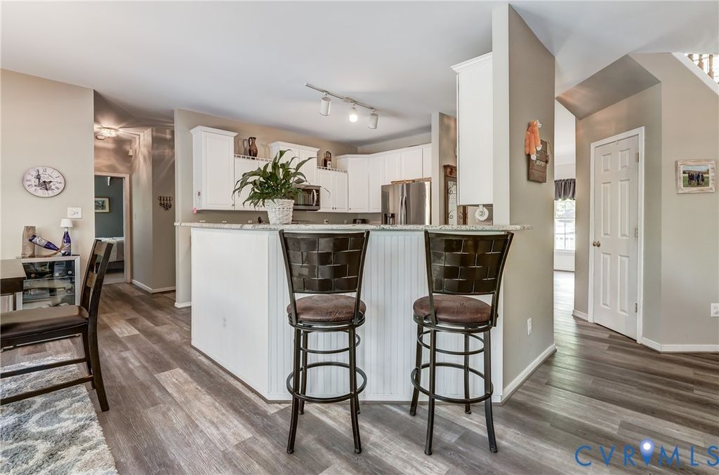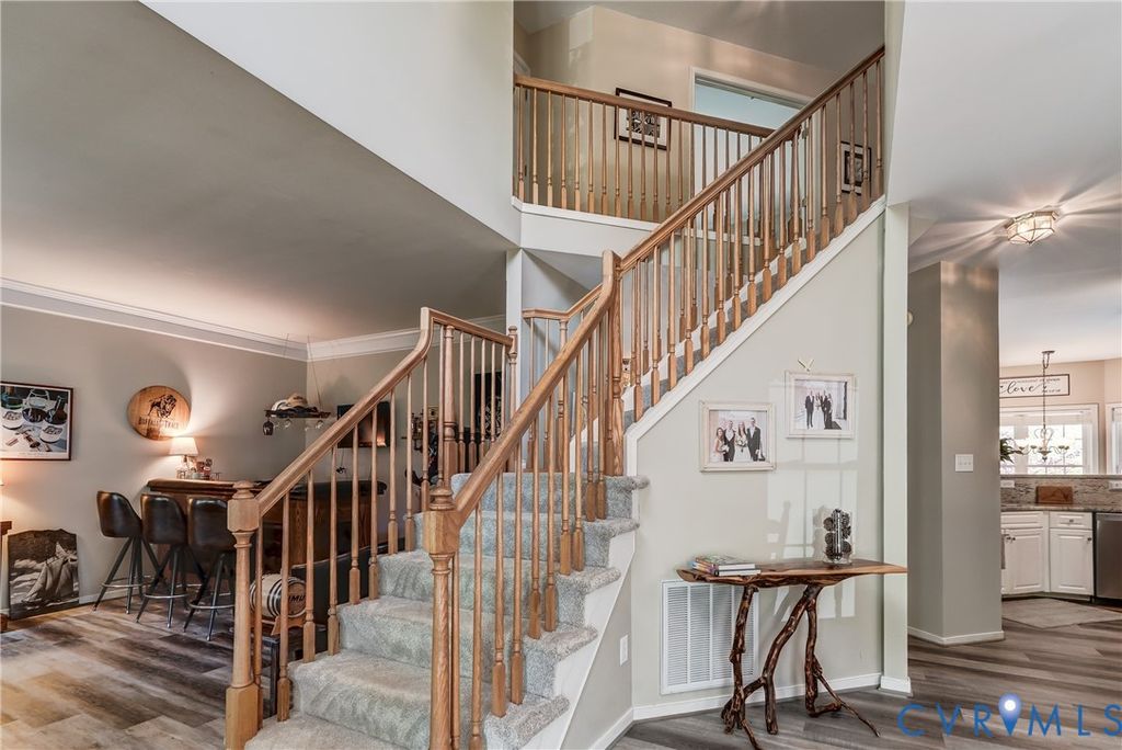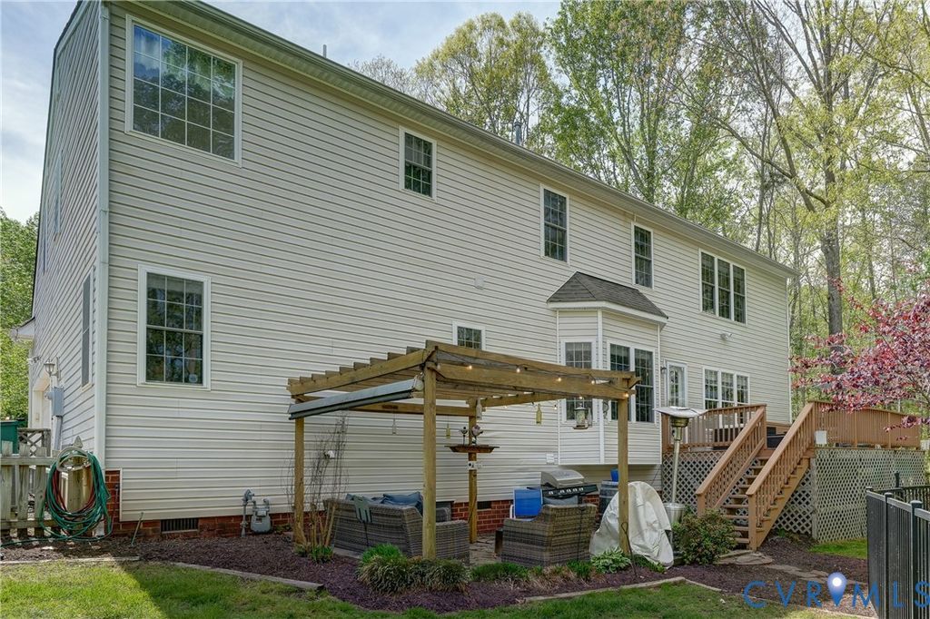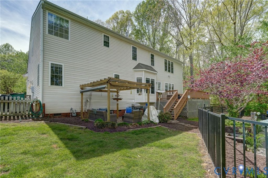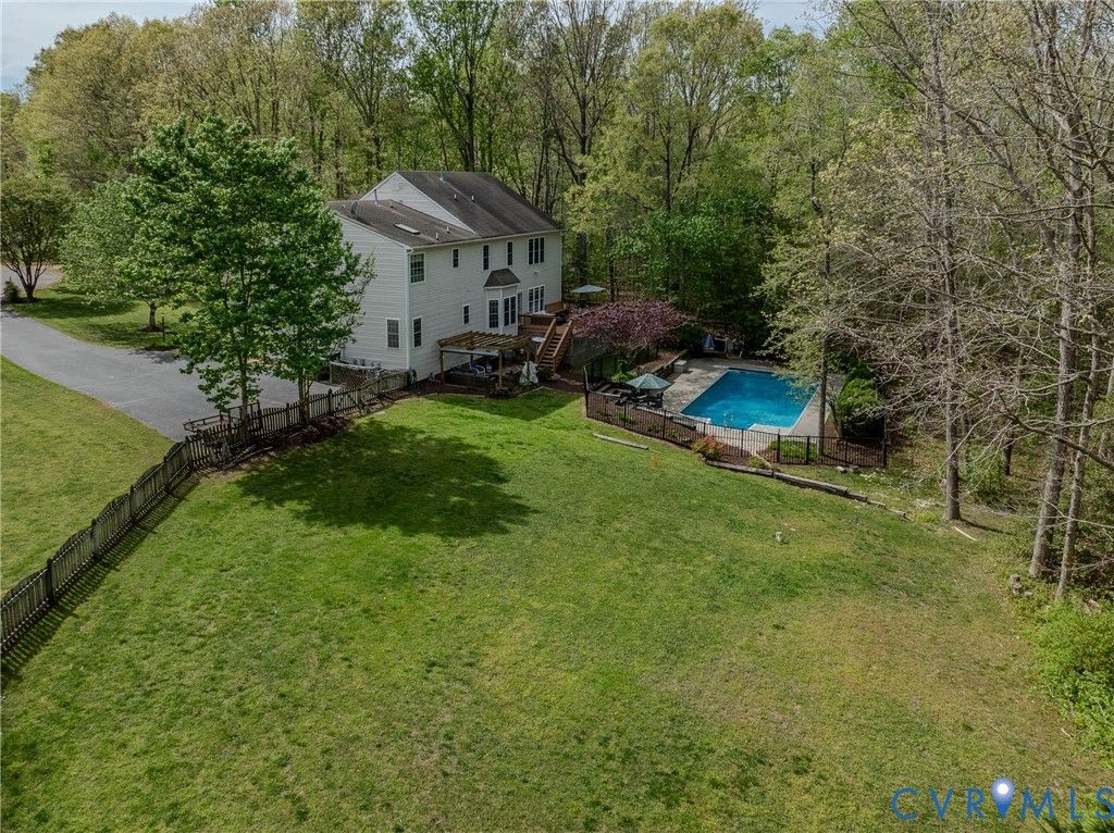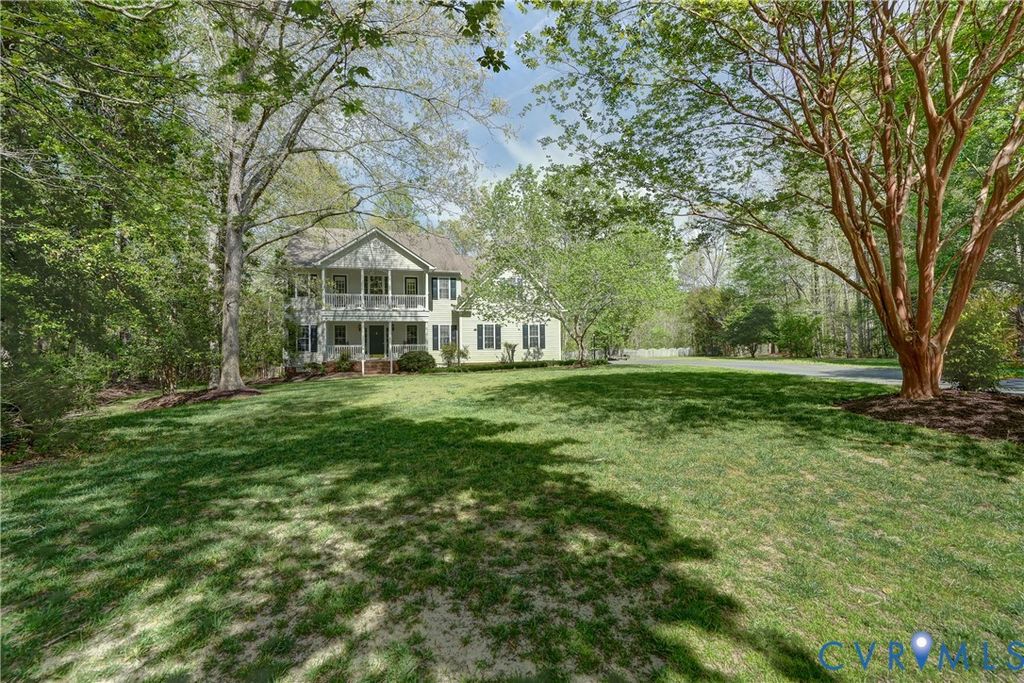 Peace, serenity and your share of the "good life" await you on this 2.2 acre cul-de-sac lot in the sought after Cold Harbor area of Hanover County! Colonial charm with a front porch and balcony above is what you'll notice upon entering the driveway and making your way to the entrance. Stepping into the open foyer with a view to the second level, take note of the high quality LVP flooring that extends throughout the entry level. To your left, the formal living room presents as a bar area that you might like to preserve upon taking ownership. The bar can even stay, if you'd like. Right of the foyer, the formal dining room is accented with crown molding, chair railing and picture frame molding. Moving to the rear of the home, you'll find it easy to admire the spacious family room with its gas fireplace and easy open flow to the kitchen & dining area. The granite countertops and stainless appliances have been installed in recent years and a bay windowed dining area creates the perfect space for informal meals and coffee breaks. There's also a pantry in this space and easy access to a full bathroom and a first floor bedroom that could also be a fantastic home office. Upstairs is where you'll find an impressive master suite, complete with its own sitting area and luxury bathroom that's fully equipped with a double vanity, garden tub, skylight & separate shower! Check out the upstairs rec room! This expansive space affords multiple opportunities including a game room, movie room, second family room, kids play room or whatever you need that bonus area for! Three more bedrooms are found up here along with the third full bath and the laundry closet. Get ready, outside we go! From the accommodating rear deck, you can look out upon an inground pool that's fenced in, heated and outfitted with an automatic cover! Just down the steps, you'll discover a flagstone patio that creates a perfect environment for unwinding w/ friends over drinks. Shopping, dining & more are close by in Mechanicsville and commutes to RVA are a breeze!