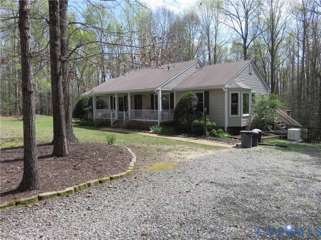 Perfectly positioned on a 5.58 acre cul-de-sac lot, this raised roof rancher offers the quality home and peaceful setting you've been thinking about! The inviting front porch beckons you to "sit a spell" and relax... but let's step inside. An expansive family room is beyond the front door and there, you'll find hardwood floors, a gas fireplace and rear deck access. Adjacent to this space, you'll find the dining area complete with a bay window and open flow into the kitchen which offers stainless appliances, lots of custom cabinetry, recessed lights and more hardwoods. In this part of the house, there's also a ceramic tiled laundry room complete with cabinets and its own exterior door. Moving to the other end of the house, there's a full hall bathroom that's easily accessed by family members and visitors alike. This bedroom wing includes the master suite with its two closets (one walk-in) and full bathroom complete with a double vanity. One bedroom has been beautifully outfitted with built-in book cases and desk space making this a perfect office if you'd like to use it that way! Out back, the large deck affords a commanding view of the fenced back yard and your acreage beyond! Improvements to note include Anderson replacement windows (2022), roof renew applied (2024), leaf proof gutters, an encapsulated and conditioned crawl space, heat pump (2020) and a brand new (2026) whole house generator! You'll also appreciate the circular driveway and abundant parking out front. And what a location! Just off of 360, and 25 minutes from Mechanicsville, commutes to Richmond are a breeze. Closer by, shopping, dining and more are a few minutes away at Central Garage and accessing Tappahannock and other river communities is a piece of cake, as well. So, here's your chance to snag a great opportunity and start enjoying country living with convenience.
