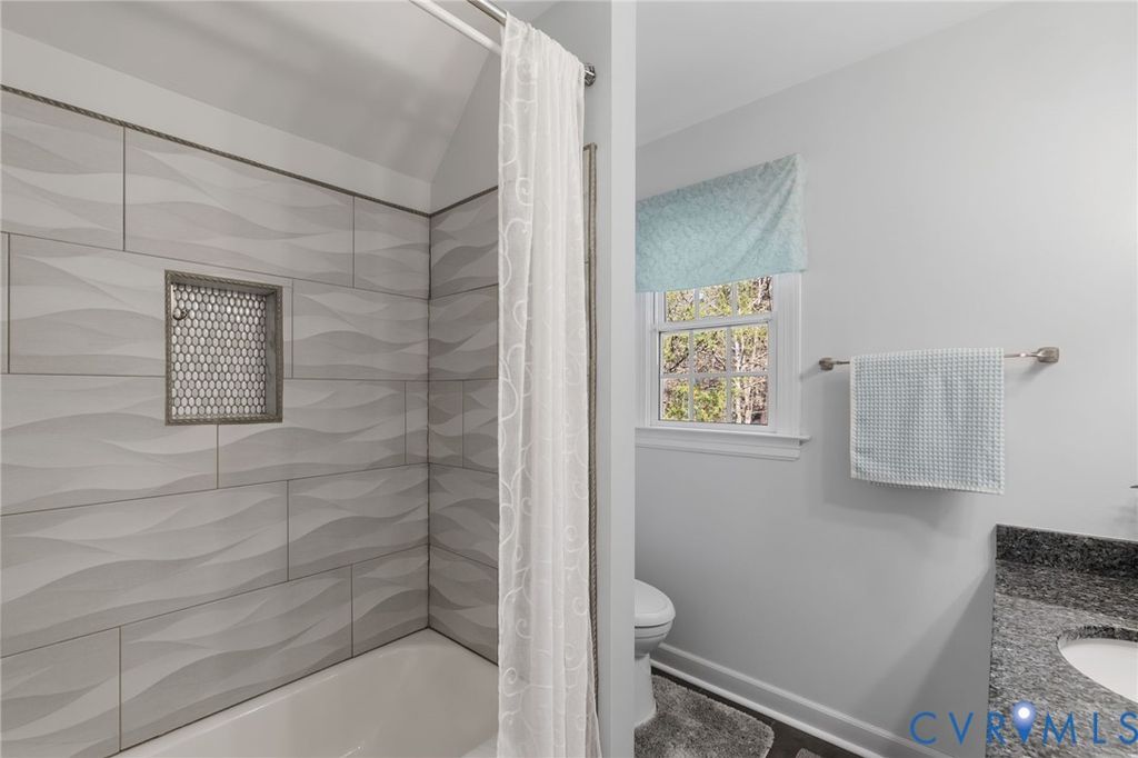 Welcome to this charming 4-bedroom, 2.5-bath home nestled in French Hill Subdivision off historic Huguenot Trail of Powhatan County. Situated on a private, wooded lot, this home offers the perfect blend of comfort and tranquility while remaining conveniently located to nearby amenities. Only 6 miles from Route 288. Step inside to find a bright and spacious living room featuring vaulted ceilings, abundant natural light, and a cozy fireplace"”ideal for both everyday living and entertaining. The open layout flows seamlessly into the updated kitchen, complete with white cabinetry, granite countertops, and ample prep space. The main level offers beautiful hardwood flooring and functional living areas, including a primary suite with his and her closets and an updated bath. While the upper level provides three generously sized bedrooms. Enjoy outdoor living with plenty of space for relaxing, gardening, or entertaining in a peaceful setting. With its classic brick-front exterior, desirable layout, and sought-after location, this home is a must-see!