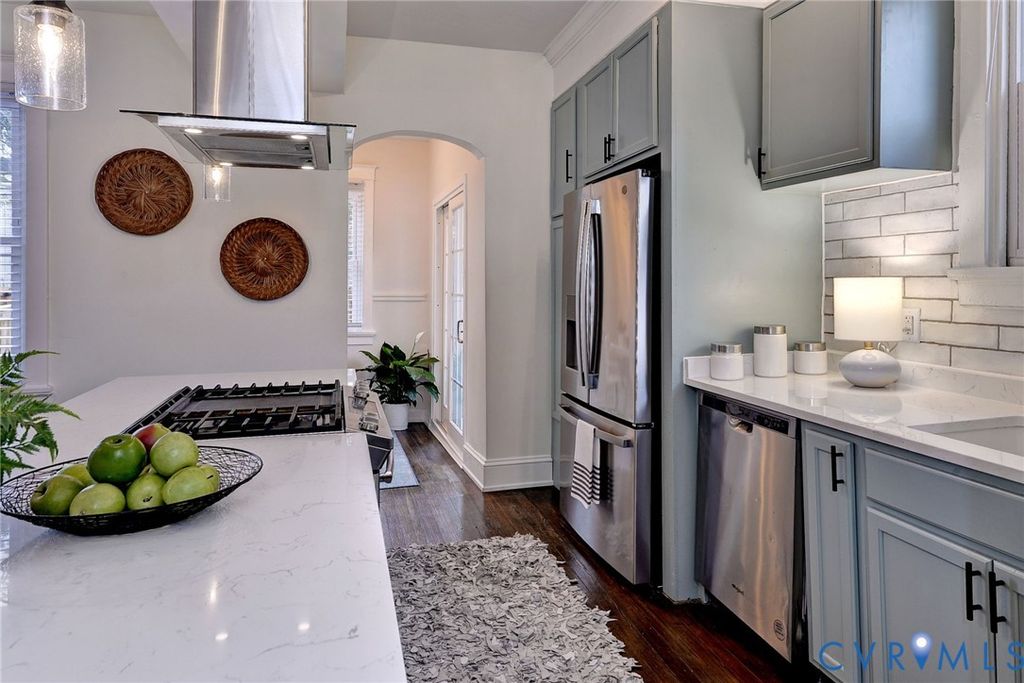 Positioned in the heart of Richmond's coveted Byrd Park, this beautifully preserved 1924 residence delivers a rare combination of timeless architecture and modern livability. Set on a private, fenced corner lot, this four-bedroom home is truly move-in ready and immediately inviting. A classic full front porch welcomes you into a bright, well-proportioned interior where an elegant living room with fireplace flows seamlessly into a sunlit dining space"”ideal for both everyday living and entertaining. The updated kitchen is thoughtfully appointed with quartz countertops, stainless steel appliances, and gas cooking, offering both function and style. Just beyond, a flexible adjoining room opens directly to the backyard, creating an effortless indoor-outdoor connection. Upstairs, hardwood floors continue throughout, leading to a spacious primary bedroom with an adjacent flex room"”perfect for a home office, sitting area, or nursery. Two additional bedrooms and a full bath complete the second level with comfort and practicality. The finished basement expands the home's versatility with its own private entrance, living area, full kitchen, bedroom, and bath"”well-suited for guests, extended stays, or income potential. Laundry is conveniently accommodated with a stackable unit in the basement and an additional all-in-one unit upstairs. Out back, a serene, fully fenced yard provides a private retreat for relaxing or entertaining. Homes offering this level of character, flexibility, and location are increasingly rare"”this is a standout opportunity to own a true Richmond classic.