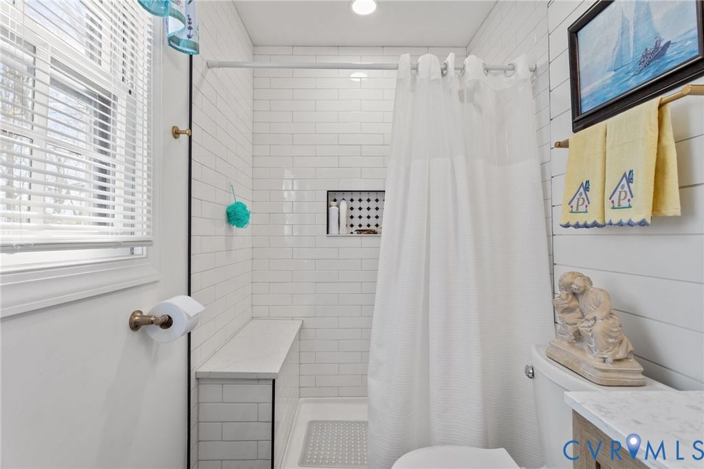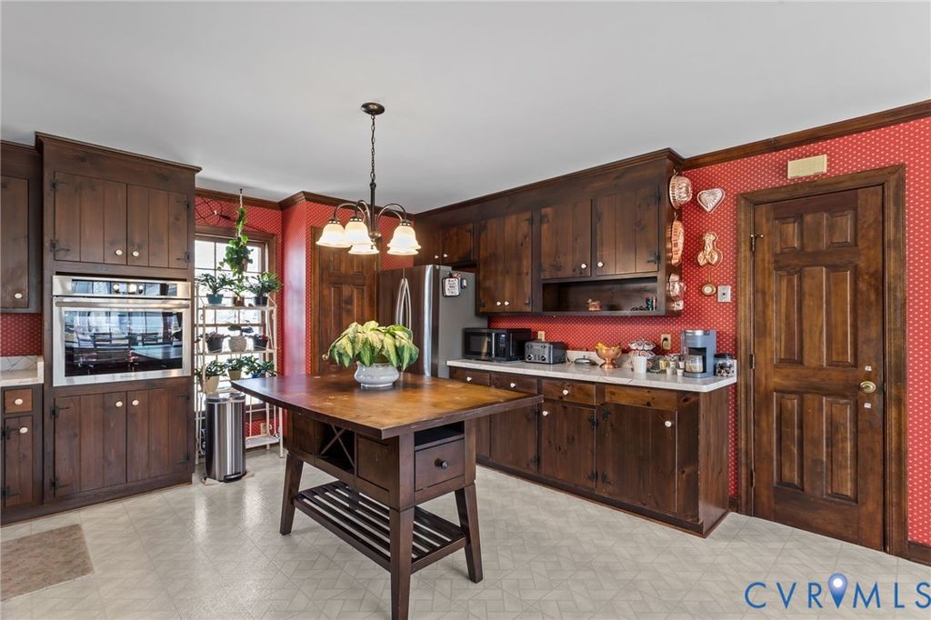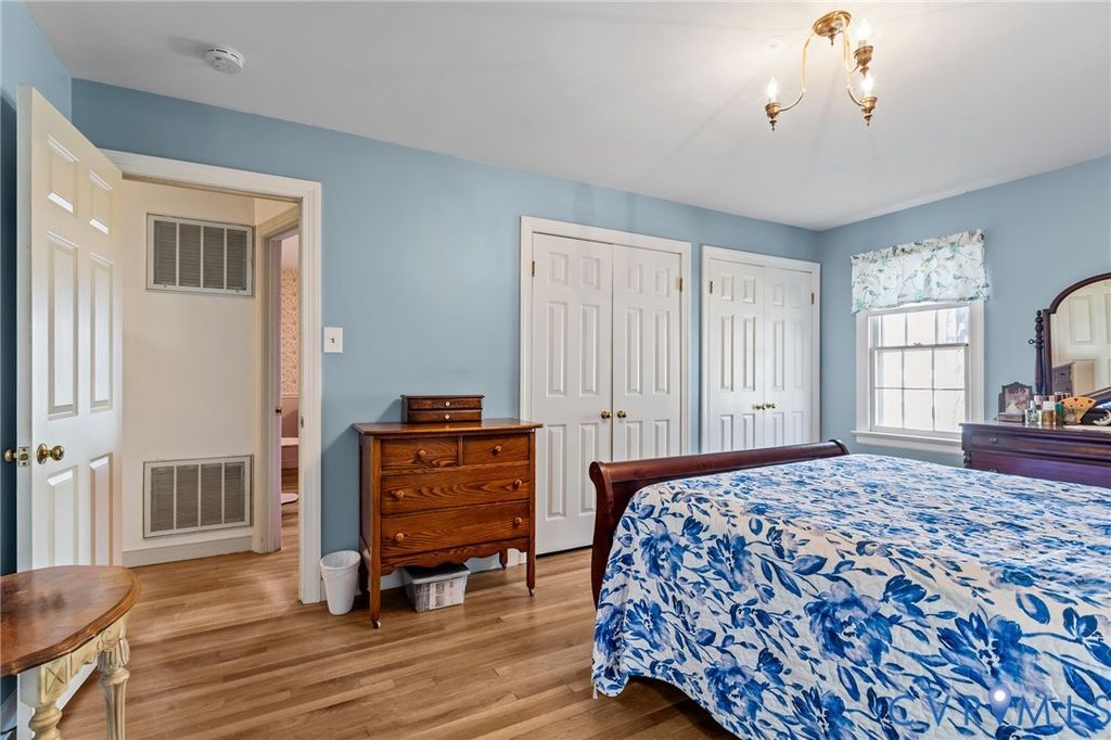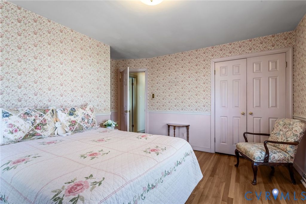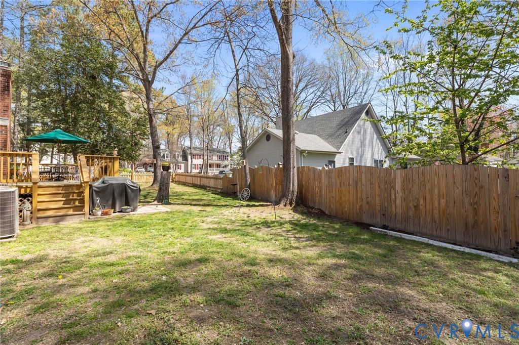 Come see this well-kept ranch-style home with wonderful amenities in an incredibly charming neighborhood! New dimensional shingle roof in 2024, New appliances in 2024, New renovated bathrooms in 2024, New PVC front railings 2026, New storage shed 2025, New Fence 2024, paved driveway, and huge 27'x11.5' rear entertaining deck with French door entry to the family room! Attractive hardwood floors through most of the home, very large rooms throughout; dining room with crown molding, chair rail, and huge picture window (also large enough to be used as a living room/sitting room); spacious eat-in kitchen with smooth-top range, stainless appliances, wall oven, double pantries, tons of cabinets, attractive wood portable island/breakfast bar, farmhouse-style sink, and large windows in the dining area providing great natural light! There's a large casement opening connecting the kitchen to the family room with beamed ceiling, wood-burning fireplace, wainscoting, and French doors to deck, the primary bedroom has his/hers double-door closets and attached full bath with beautiful tiled shower, both secondary bedrooms also have double-door closets; and there is plenty of storage with coat closet, linen closet, and pull-down attic with floored area. Between the kitchen and driveway, there is a massive 19.25'x15' utility area with laundry, workspace, and storage that is a mini-split away from becoming finished living area. The neighborhood is incredibly friendly, with community pool and pond view; and the location is perfect, just over five minutes from highways, grocery, parks, and restaurants; and a quick commute to nearly every part of the Richmond area! What a wonderful place to call home!
