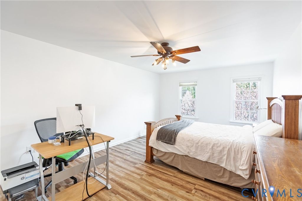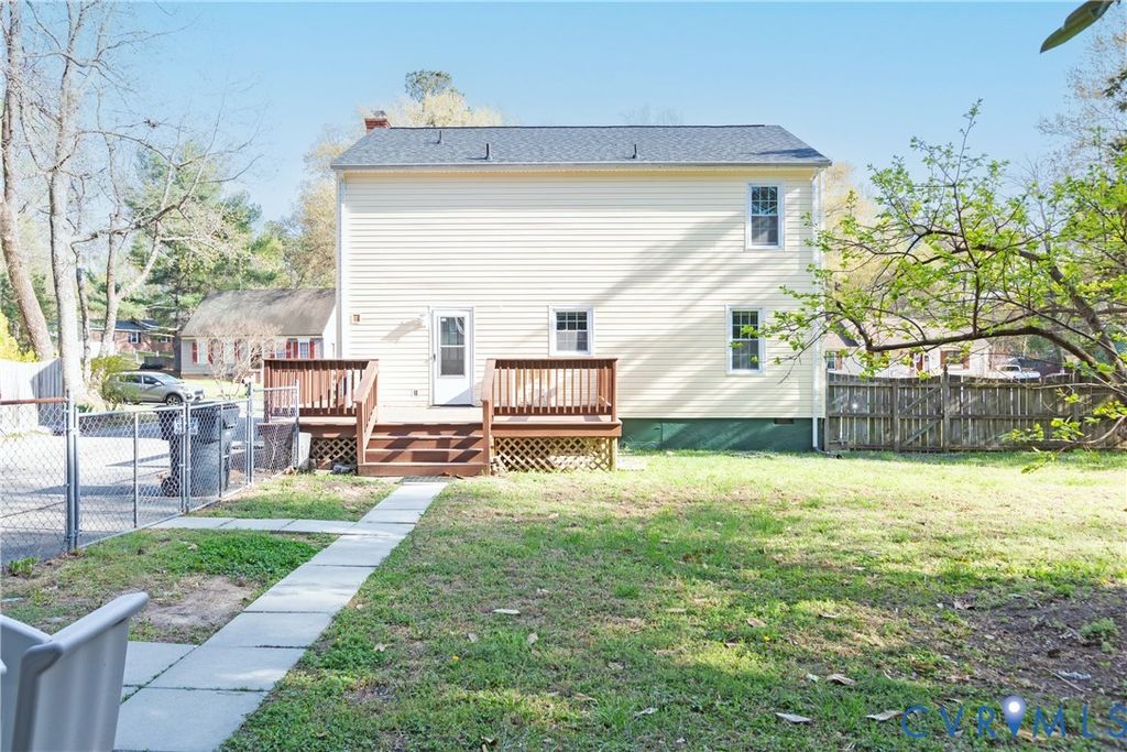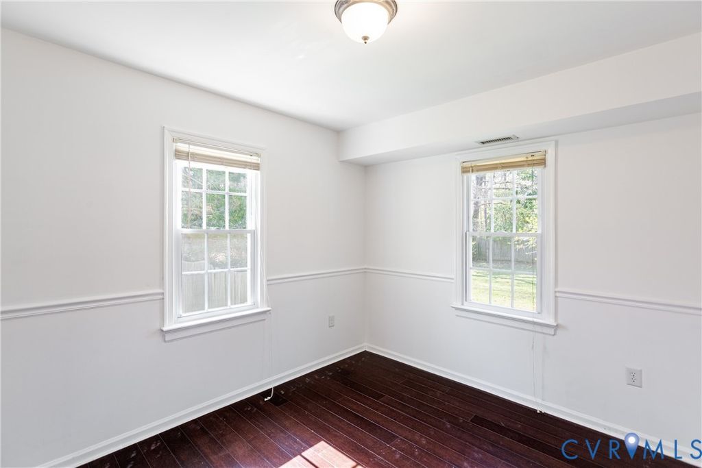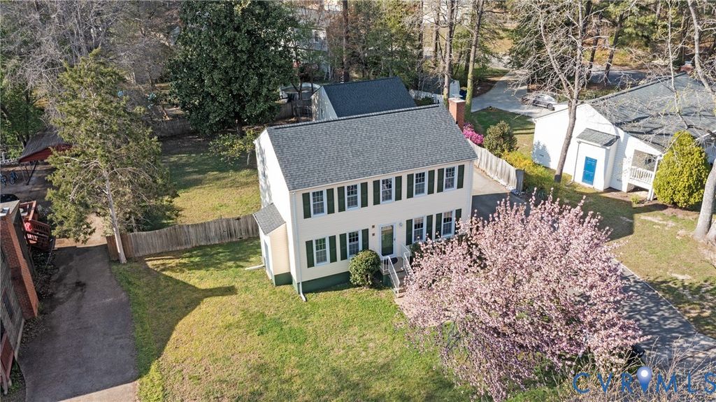 Welcome to 5406 Sharis Place in the Salem Woods neighborhood of North Chesterfield. This freshly painted two-story home has over 1,600 square feet and a layout that just makes sense. You'll find all wood flooring throughout, a convenient half bath downstairs, and two full bathrooms upstairs. The bathrooms feature tile and have been well kept, giving the home a clean feel from top to bottom. Out back, you've got a fenced-in yard with space to relax or entertain, plus an oversized detached two-car garage that's hard to come by in this area. Solid home, clean, and move-in ready.