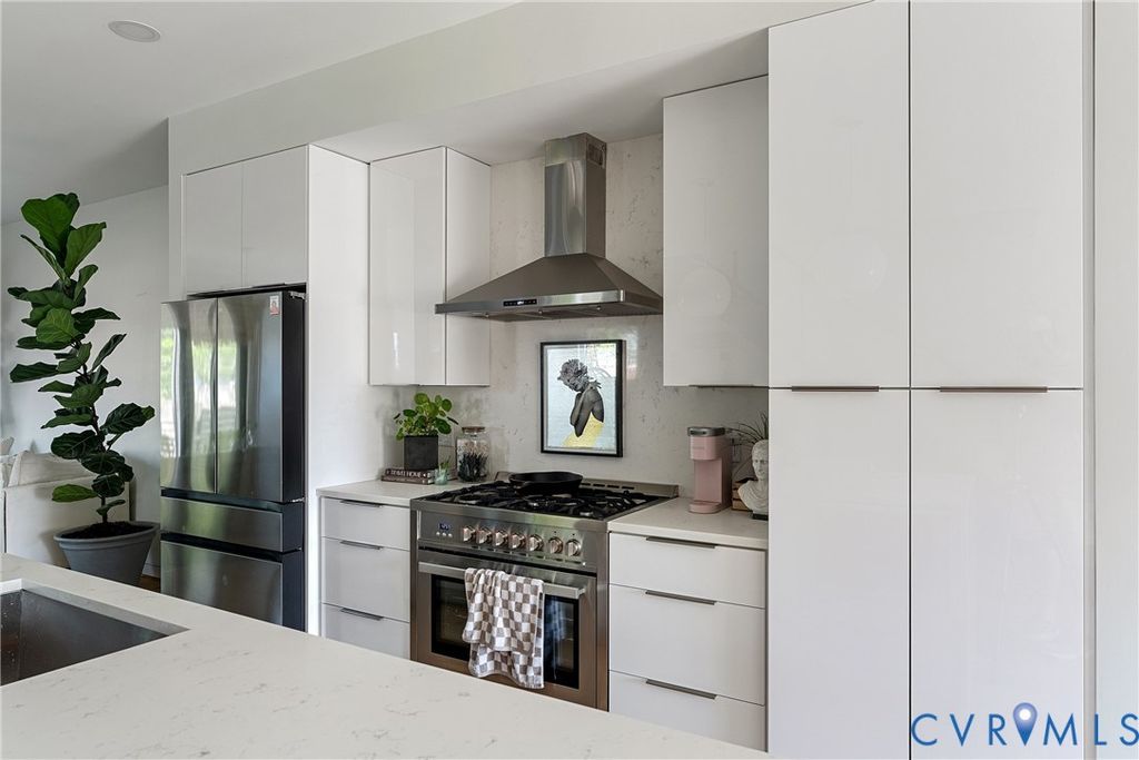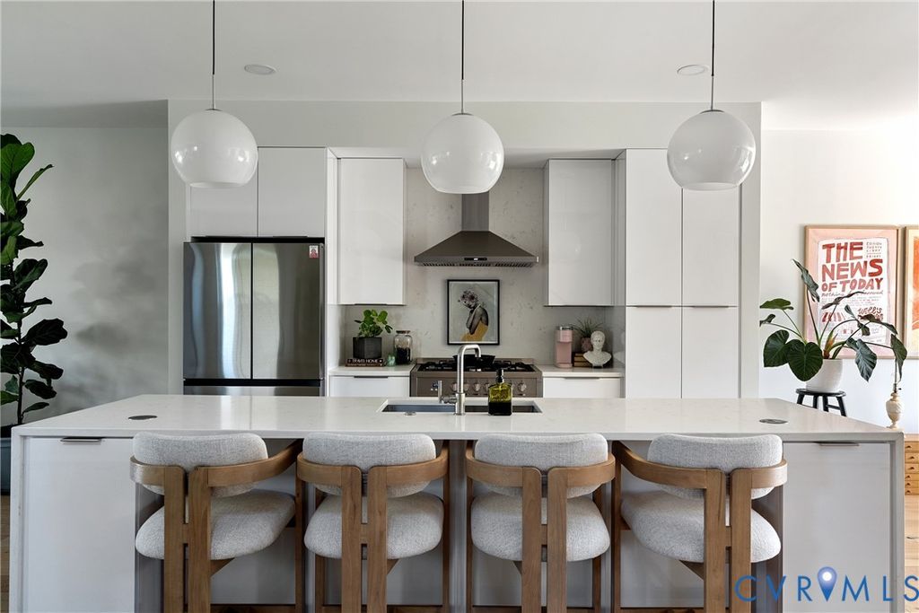 Positioned just blocks from Sub Rosa, Union Market, The Roosevelt, and neighborhood favorites, 2522 Q Street places you in the heart of one of Church Hill's most vibrant, walkable pockets, with seamless access to downtown Richmond and VCU Medical Center. Modern design meets everyday ease at this thoughtfully built 2024 residence, offering over 2,100 square feet of elevated living paired with refined finishes and effortless functionality throughout. Inside, expansive windows flood the home with natural light, highlighting the sleek finishes and open layout. The main living area is anchored by a modern gas fireplace, creating a warm yet sophisticated focal point. The kitchen is a true centerpiece, featuring quartz countertops, an oversized island, statement sink, gas cooking, downdraft range, stainless steel appliances, and custom cabinetry, perfectly designed for daily living. A stylish powder room completes the main level. Upstairs, the primary suite offers a private retreat, complete with a massive walk-in closet and a private bath featuring a dual vanity, modern tile work, and glass-enclosed shower. Two additional bedrooms provide flexibility for guests or office space, along with a beautifully finished hall bath and dedicated laundry room with washer and dryer. A tankless hot water heater adds both efficiency and modern convenience for everyday ease. One of the standout moments of the home is the rooftop terrace, an entertainer's dream and elevated extension of the living space where city views meet open sky, offering the perfect setting to unwind or host in the evenings. Outside, freshly installed sod creates a clean, low-maintenance outdoor setting, complemented by a private fenced yard. As a recently built home, the entire property remains covered under the builder's one-year warranty. Intentional design and a prime setting come together to create a home that captures the essence of city living: refined, inviting, and full of possibility. Come experience it for yourself and schedule your tour today!