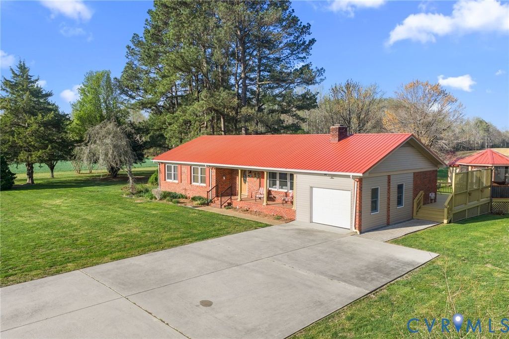 Well-maintained one-story brick home on just over 2 acres in a peaceful country setting, surrounded by farm fields and timberland. Built in 1978 and thoughtfully updated, this property offers a spacious living room with gas fireplace and built-in shelving, a large eat-in country kitchen with quartz countertops and stainless appliances, utility room, 3 bedrooms, and 2 full baths. Recent improvements include a new metal roof (house, shed and gazebo), updated insulation, replacement windows, water heater, and numerous interior upgrades including paint, lighting, flooring, and fixtures. The home reflects consistent care and attention over the years. Outdoor features are equally appealing, with an open front porch, expansive rear deck with custom awning, and a screened gazebo --- ideal for relaxing or entertaining. A detached 2-car garage/workshop with electricity, storage shed, and established apple orchard with a wide variety of trees add both function and charm. Conveniently located just minutes from Lively, Kilmarnock, and surrounding towns, this property offers the best of country living with high-speed internet and modern delivery services available. Home, Septic, and WDI inspections available for serious inquiries. Full list of improvements available upon request. Offered at $379,500.