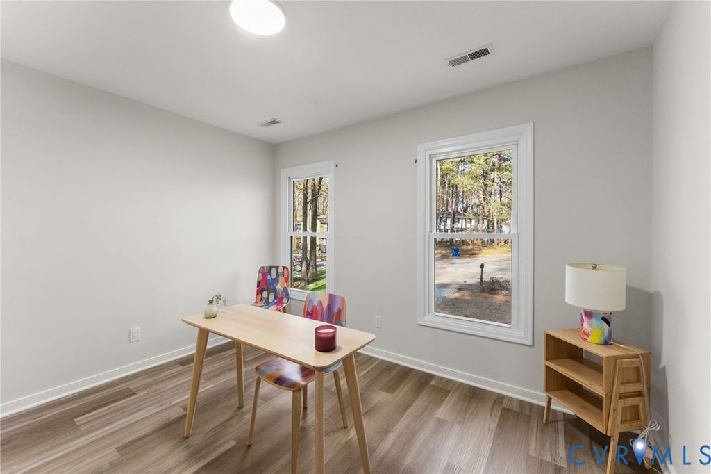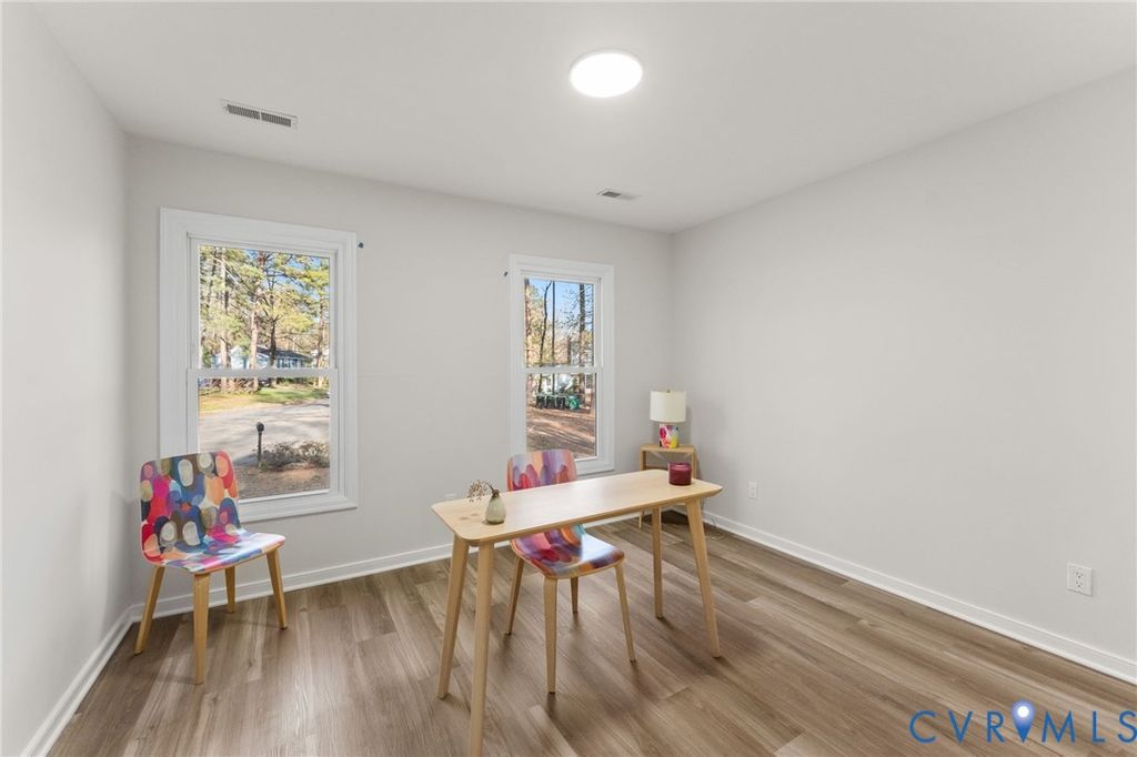 Completely renovated and move-in ready in the heart of Henrico! This beautifully updated two-story home offers the perfect blend of modern finishes and classic charm, set on a private, wooded lot. From the moment you arrive, you'll notice the brand new driveway with retaining wall and fresh landscaping that create standout curb appeal. Inside, the home has been thoughtfully redesigned with new LVP flooring throughout both levels, fresh paint, and updated lighting, including recessed lighting that brightens the entire main living space. The inviting family room features a cozy fireplace with a custom accent wall and wood mantle, flowing seamlessly into the stunning new kitchen with quartz countertops, stainless steel appliances, and updated hardware. The dining area showcases eye-catching craftsman-style wainscoting and a stylish statement light fixture, perfect for entertaining. Upstairs, you'll find spacious bedrooms with abundant natural light, including a primary suite with a fully renovated bath featuring custom tile and a sleek glass shower door. All 2.5 bathrooms have been completely updated with modern finishes. Additional upgrades include an encapsulated crawlspace for improved efficiency and peace of mind. Step outside to a large backyard with a deck, offering the ideal space for relaxing or hosting. Conveniently located near shopping, dining, and major highways, this turnkey home is one you don't want to miss.