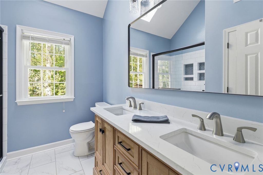 Welcome to 4717 Stoney Creek Pkwy in Stoney Glen! This beautifully maintained 2-story home offers 4 bedrooms, 2.5 baths and 2,362 sq ft of well-designed living space. Inside, the foyer opens to a versatile front room with French doors, perfect for an office, playroom, or additional sitting area, while the spacious living room showcases crown molding, recessed lighting, a gas fireplace with brick surround and wood mantle and direct access to both the garage and rear deck. The kitchen is thoughtfully appointed with granite countertops, a soapstone tile backsplash, black stainless steel appliances including a double oven, a center island for prep or seating and a pantry, all flowing seamlessly into the bright morning room filled with natural light from surrounding windows, vaulted ceilings, skylights and a striking Palladian window. A formal dining room with detailed trim and front-facing windows provides an ideal setting for gatherings and the entire first floor features new LVP flooring. Upstairs, the primary suite offers a walk-in closet and an updated en-suite bath with vaulted ceiling, skylight, double vanity with quartz counters, and a walk-in tiled shower with glass enclosure, built-in bench, and custom niches, while three additional bedrooms, a full hall bath with skylight, and a convenient second-floor laundry closet complete the level. Additional highlights include all new LVP floors on the first floor, fresh paint throughout, new toilets, a 2022 HVAC system, a 2022 water heater, and a walk-up attic with partial flooring, lighting, built-in shelving, and attic fans for excellent storage and functionality. Residents of Stoney Glen enjoy community amenities including a pool, clubhouse, playgrounds, walking and jogging paths, and picnic areas. Outside, the home continues to impress with a rear entry 2 car garage, recently fenced backyard ideal for pets or play, a spacious rear deck with multiple access points, mature landscaping and outdoor lighting that enhances the setting for relaxing or entertaining.