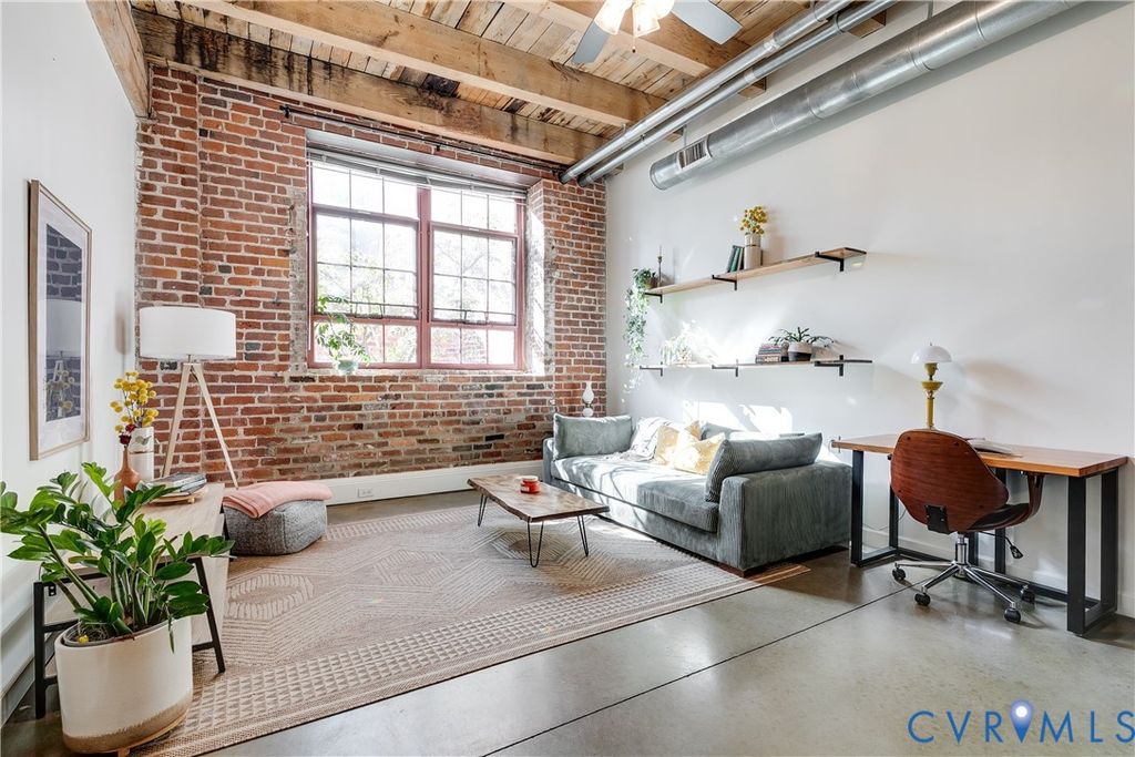 Originally constructed in 1895 as a working bakery, Old Manchester Lofts offers a rare blend of historic architecture and modern living. From the moment you step inside, you'll notice the character"”soaring archways, exposed brick, and a dramatic central atrium that sets this building apart. A welcoming lobby with local artwork and seating creates an inviting first impression, while zero-entry access from the parking lot to your front door adds everyday ease. Inside the unit, tall ceilings, exposed beams, and original brickwork provide a warm, industrial-chic feel. The open layout is both functional and flexible, with the bedroom tucked at the front and the living space unfolding toward the rear. The kitchen has been thoughtfully updated with custom-painted cabinetry, granite counters, a new tile backsplash, stainless appliances, and a pendant-lit island that naturally becomes the heart of the home. The living area is bright and inviting, offering a seamless space to relax or entertain, while the updated bath features a marble-topped vanity and modern finishes. And when you're ready to unwind, head upstairs to the rooftop deck"”where panoramic city views remind you why Old Manchester continues to be one of RVA's most vibrant neighborhoods. With restaurants, breweries, and local favorites just steps away, the lifestyle here is hard to beat. Assigned parking (#63) | New HVAC (2024)