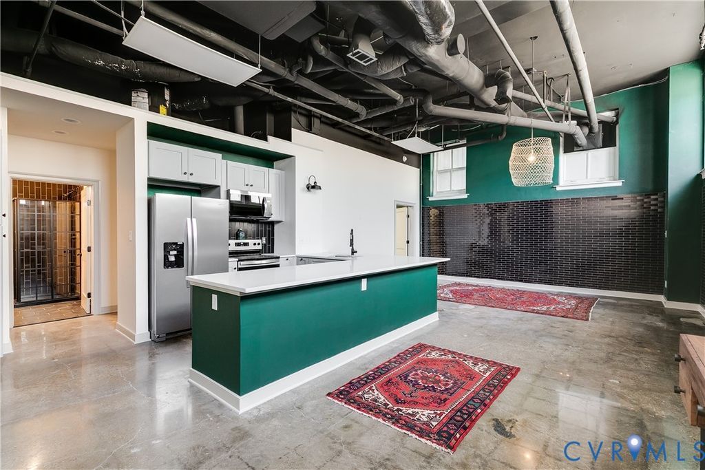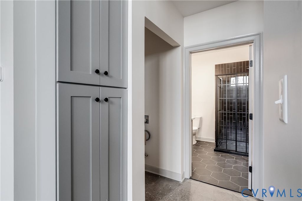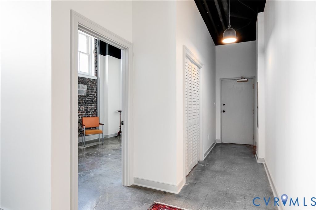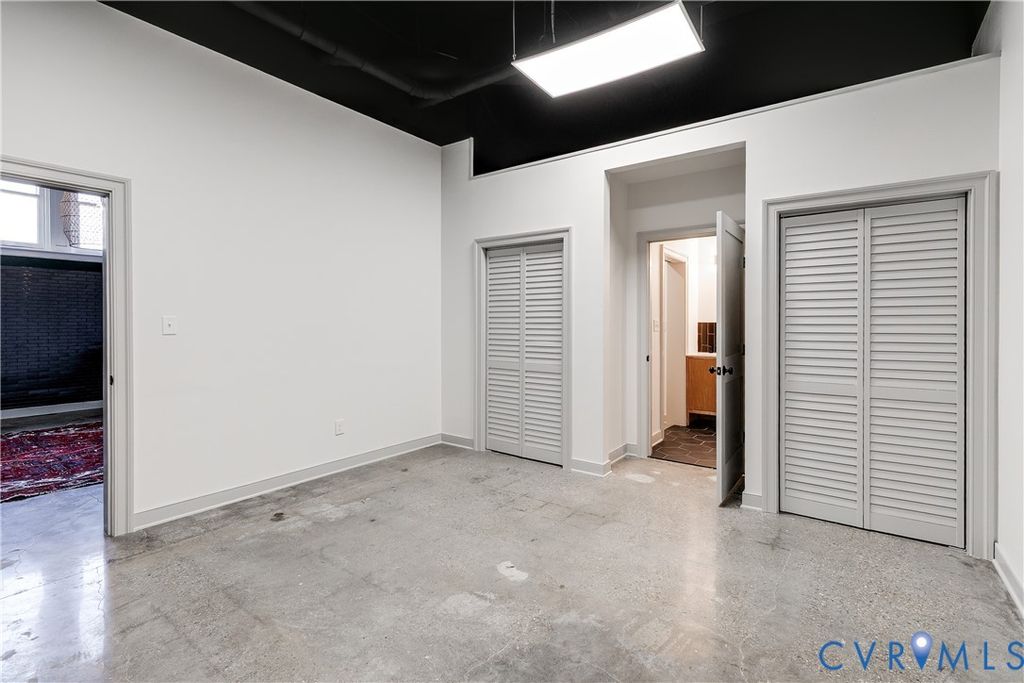 This entirely unique Downtown condo has been completely refreshed and reimagined and is fresh on the market for the first time as a residential unit. Developed as a commercial unit in the condo conversion of this historic Financial District mid-rise, unit 1B retains its open concept, soaring ceilings, concrete floors and industrial-chic vibe while adding two luxe full baths, a fully new kitchen, and comfortable bedrooms spaced at opposite ends of the unit for great privacy. While the other residential units all enjoy their own storage compartments in the elevator-accessed basement, unit 1B has its own 426 square foot secure room, that can be used for storage or additional space. Convenient to everywhere in Richmond, this central location is walkable to music venues, dining, riverfront attractions, Virginia's Capital Trail, and more. Metered parking is available on street, and several monthly parking garages offer long-term parking solutions at an affordable price point. Come see what true city living has to offer!