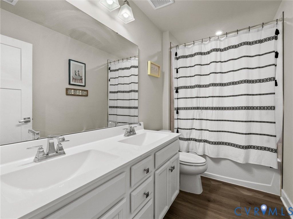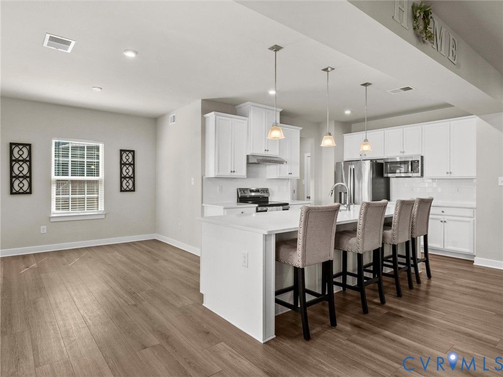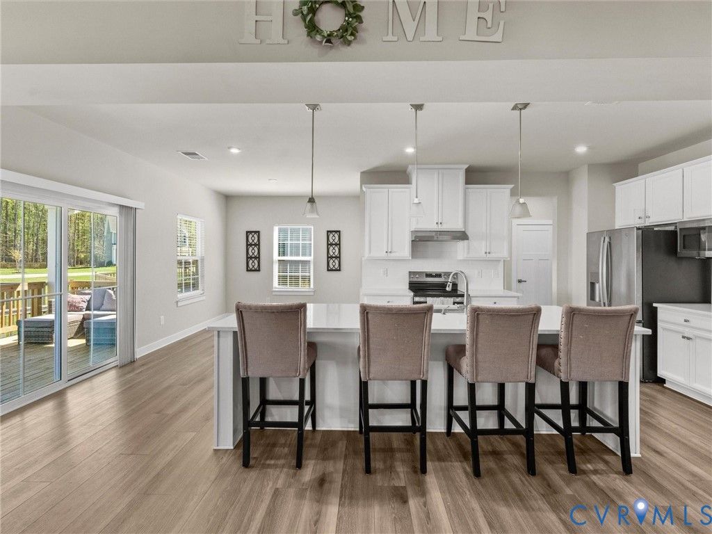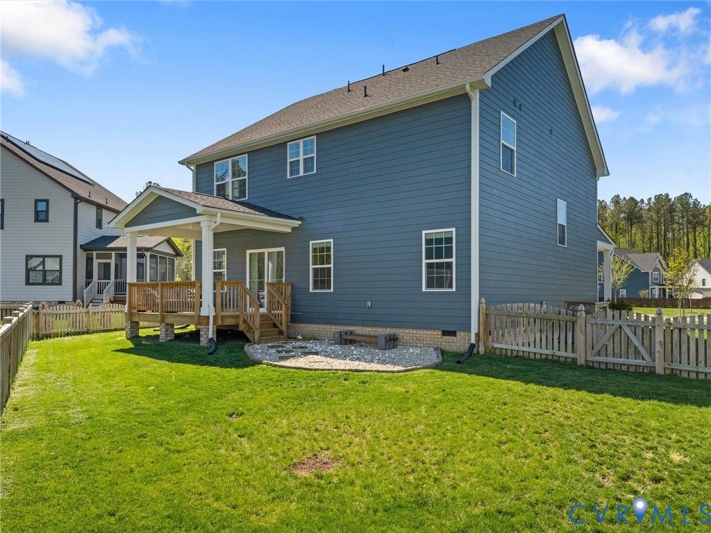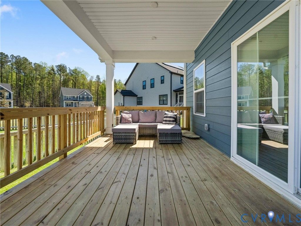 Located in the highly sought-after Atlee corridor, this practically brand-new 4-bedroom, 2.5-bath home in Giles Farm, built in 2024, offers modern living at its finest. The open-concept layout seamlessly connects the living room, kitchen, and dining nook, highlighted by LVP flooring throughout the main level. The kitchen features stainless steel appliances, an expansive island with quartz countertops, a subway tile backsplash, and a pantry. A private office with French glass doors creates the perfect work-from-home retreat, while a convenient drop zone is located just off the 3-car garage. Step outside to a covered deck overlooking a fenced backyard, ideal for relaxing or entertaining. Enjoy resort-style amenities including a clubhouse, pool, multiple playgrounds, soccer fields, scenic ponds, walking trails, and a zip line.