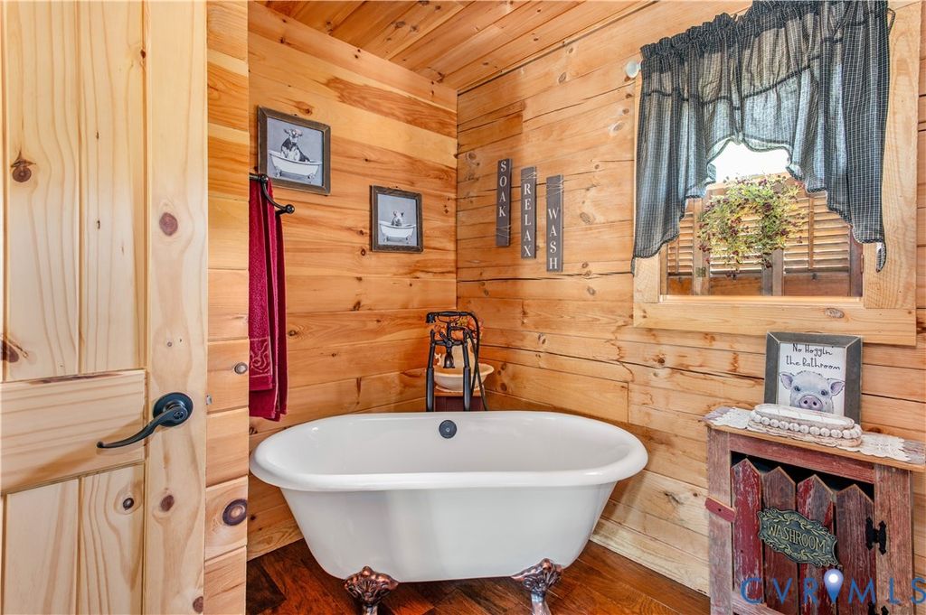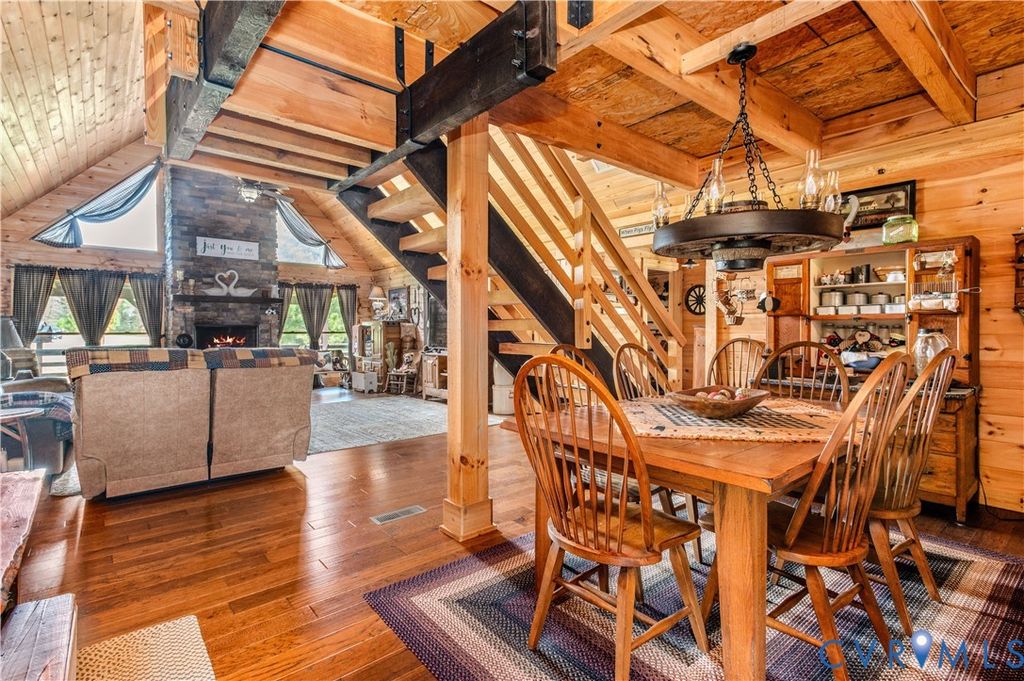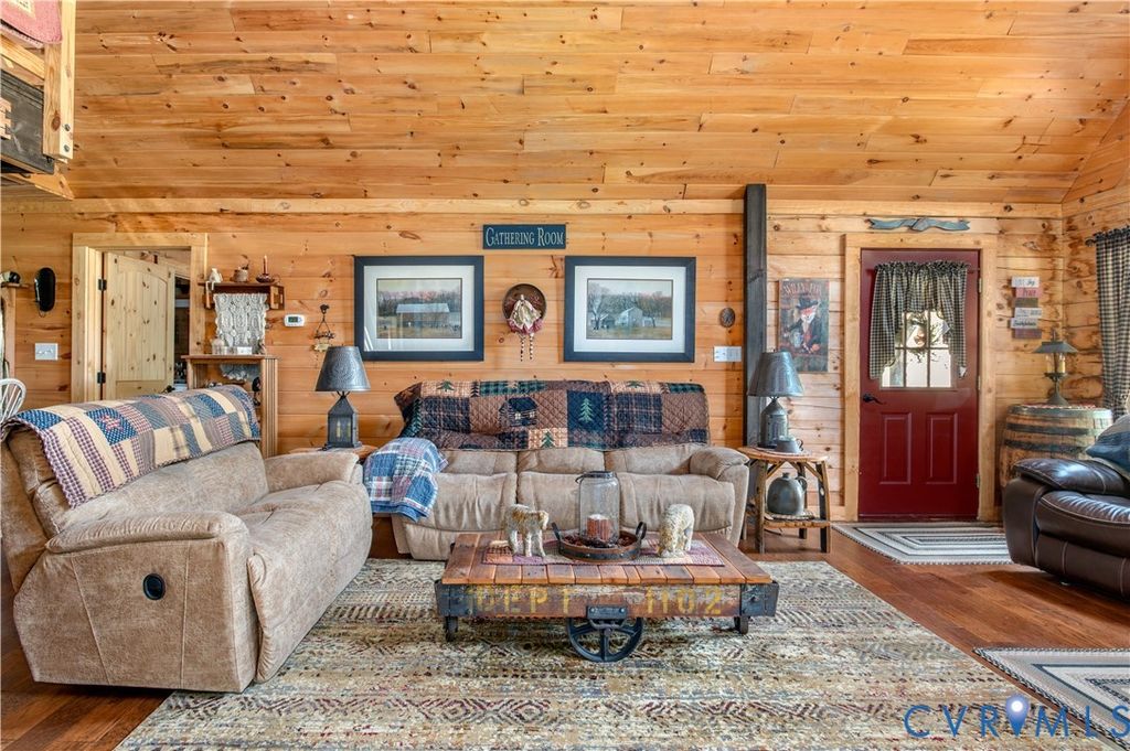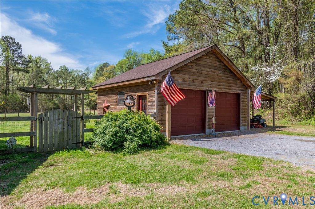 Set on 9.59 acres, this log home offers a private, peaceful setting with room to spread out. Inside, you will find an open-concept layout featuring vaulted ceilings and a stunning floor-to-ceiling wood-burning fireplace in the main living area. The galley kitchen flows easily into the dining and living spaces, creating a comfortable and functional layout. The home offers two bedrooms plus a loft currently used as a third bedroom, along with an additional room that provides flexible space with a convenient laundry closet. The spacious primary bedroom is a true retreat, and the primary bath features a beautiful clawfoot tub. Outside of the home, there is even more to enjoy! There is a large front porch, relax by the fire pit, the above-ground pool and hot tub. The open land offers endless possibilities for recreation, gardening and animals. Don't forget the detached 2-car log garage! If you've been searching for a log home with acreage and a true country feel, this property delivers.