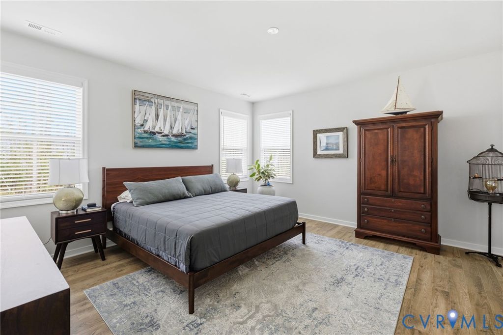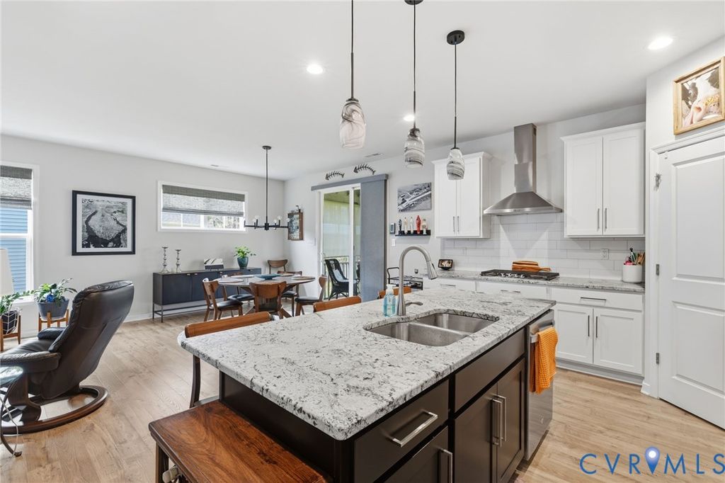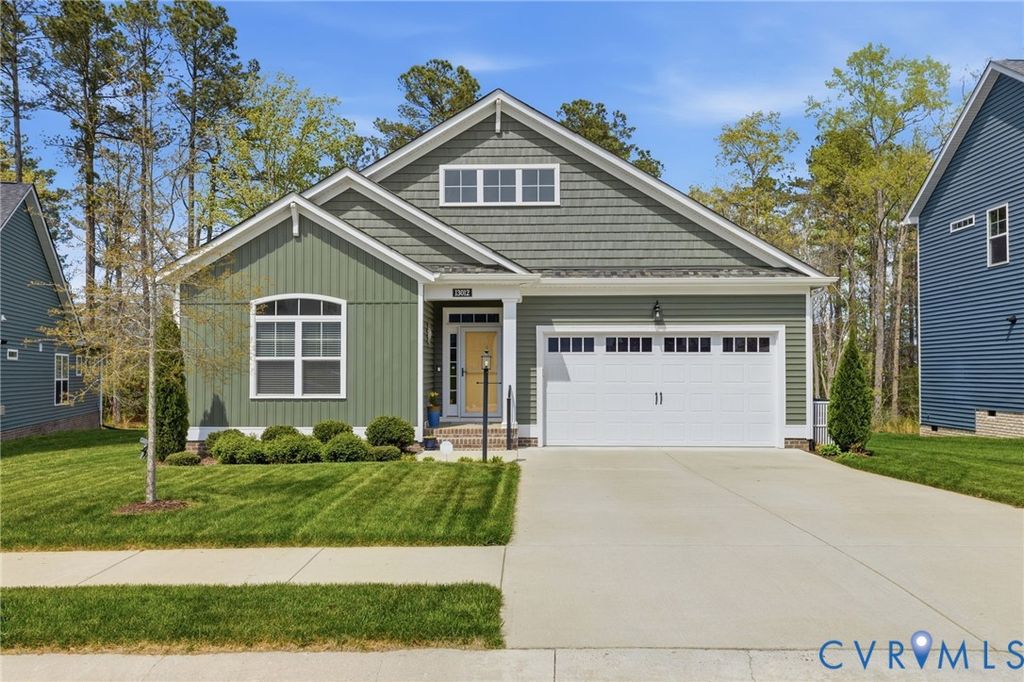 This Main Street home truly is One Level living at its best! Located in Sought After Collington East, this upgraded beauty is Energy Star certified and features an open floor plan, custom window treatments, 9ft ceilings and wood flooring throughout! The spacious family room with ceiling fan and gas fireplace opens to the stunning kitchen featuring elevated cabinets with soft close doors, pull out drawers, stainless steel appliances, gas cooktop, large island with breakfast bar, leathered Granite counters, recessed LED lighting, tile backsplash and a large pantry. The kitchen opens to the large dining area with sliding doors to the 12x12 screened-in porch with vaulted ceiling, ceiling fan and access to the stamped concrete patio which overlooks the beautiful back yard. The primary bedroom features a huge walk-in closet and primary bath with ceramic tile flooring, raised double vanity and upgraded 6ft euro shower with ceramic tile surround and bench. Laundry room with access to the 2 car garage with custom built-in storage, front, side and rear irrigation system, low maintenance vinyl siding, beautiful landscaping and a double width concrete driveway. Collington features many amenities including walking paths, playgrounds, pool and a Clubhouse!