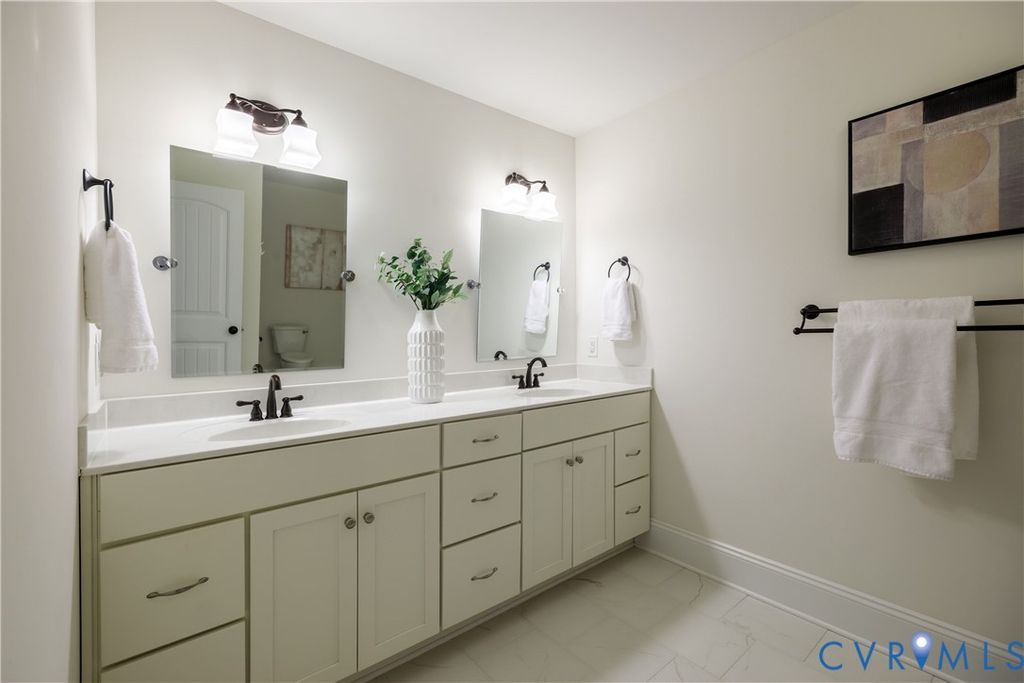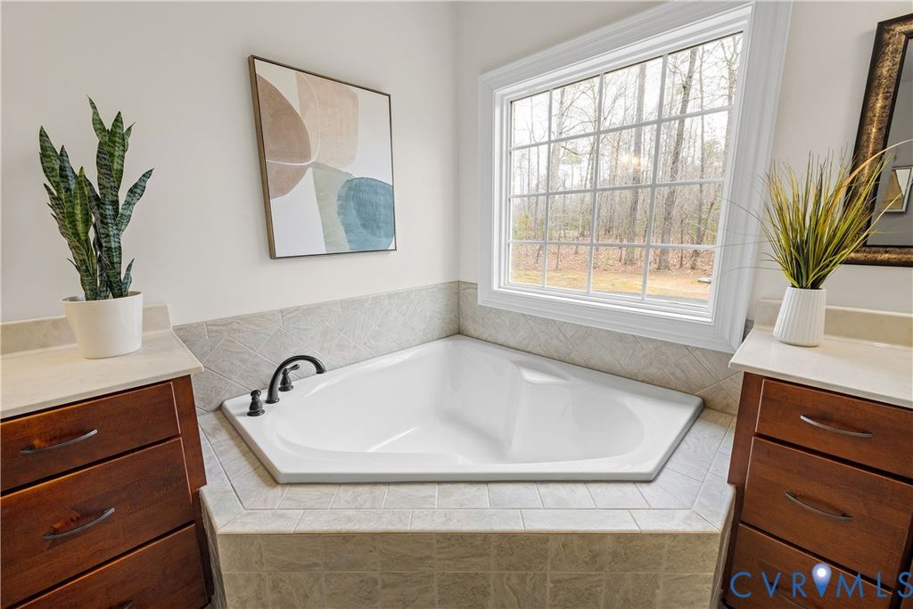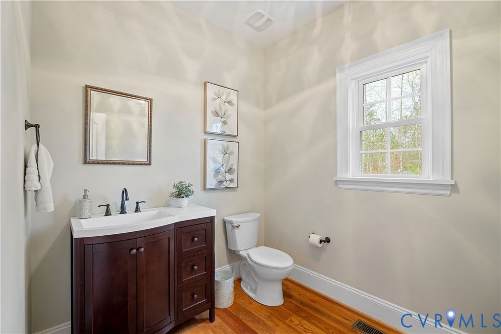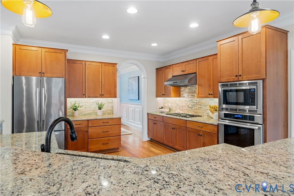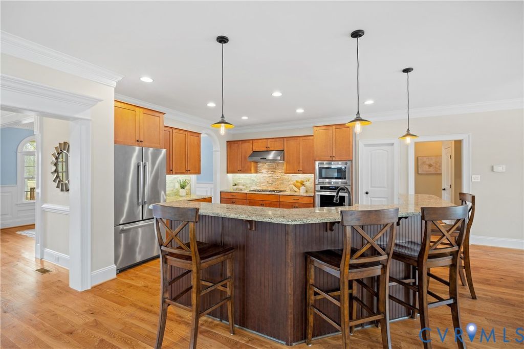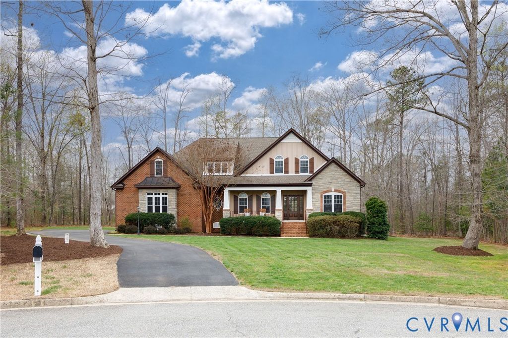 Set on one of the choicest lots in Hickory Hill, this quality-built home by Krikovic & Ziegler is the perfect blend of authentic craftsman styling and a modern, yet practical, floor plan. Elegant architectural details like brick and Hardiplank construction with stone accents and a covered front porch set this home apart. The welcoming foyer features exquisite mouldings, French doors leading to the home office, and the entrance to the formal dining room for your special occasions, and the heart of the home is the open family room, kitchen, breakfast room and screened porch. The family room with stone fireplace overlooks the screened porch, and the well-appointed kitchen includes a large island, granite counters, high-end Thermador stainless appliances, a gas cooktop, walk-in pantry, and a breakfast room large enough to feed a crowd. Hard-to-find first floor primary bedroom has a dramatic 14-foot vaulted ceiling, two generous walk-in closets and an elegant primary bath with soaking tub and oversized shower. The second floor features a wide hallway with sitting area and an ensuite bedroom with private bath and walk-in closet that could serve as a second floor primary bedroom. Two additional guest bedrooms adjoin a bonus room with skylights ~ perfect for an exercise room, playroom or a second home office! Adding to the ideal 4100+ SF floor plan are details like wide plank hardwood floors throughout (with carpet in the bedrooms), gracious room sizes, lots of windows and natural sunlight, plenty of storage at every turn, oversized two-car garage, newer heat pumps (2017) with propane gas back-up, a Rinnai continuous hot water heater, and a Generac generator. Best of all you'll love the privacy of the 1.5 acre cul-de-sac lot in Hickory Hill, featuring walking trails, a picnic and playground area, and some of Hanover County's finest public schools.