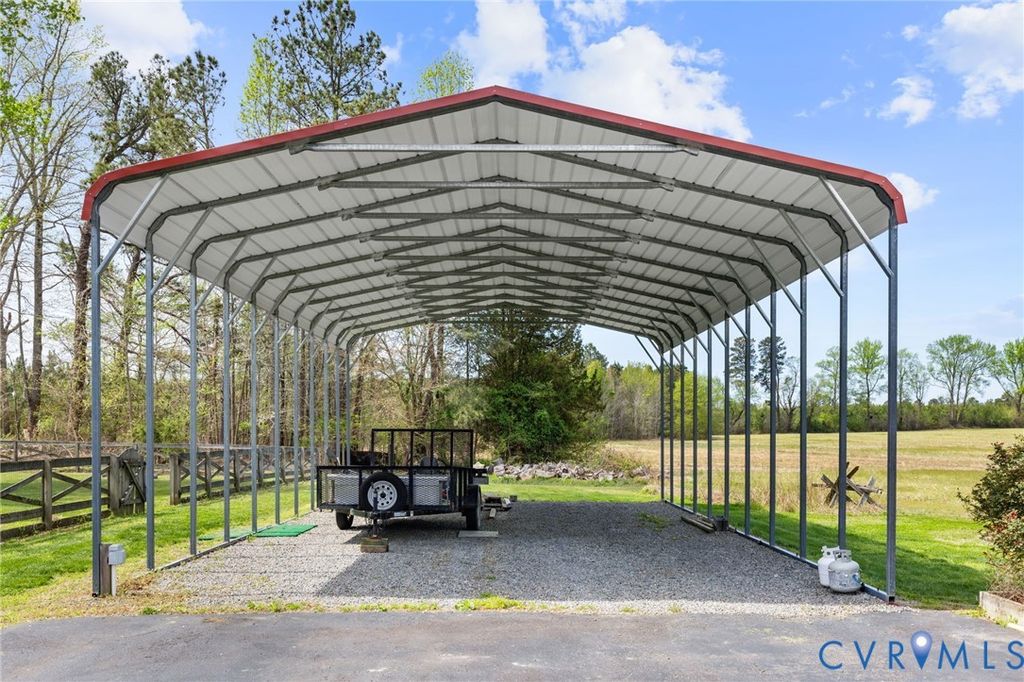 Gorgeous 3 BR and 2 BA brick ranch on a beautiful 1 acre lot. The home features a huge open kitchen and family room that includes a brick fireplace with a pellet insert that will heat the entire house! There is a large living room with a picture window that overlooks the expansive front yard. A paneled dining room along with 3 bedrooms complete the plan. The kitchen includes tile countertops and ceramic floors. Hardwoods are found throughout the majority of the home with some covered by carpet. The beautiful back yard in enclosed by a split rail fence and includes a "Froggy" fixture from Kings Dominion. New HVAC was installed in 2023 and the roof in 2014. Got an RV? ... no problem! Marvel at the 26' x 48' high arched carport with hookups that will protect your vehicle. This is one you will want to add to your list ... make your appointment today! .