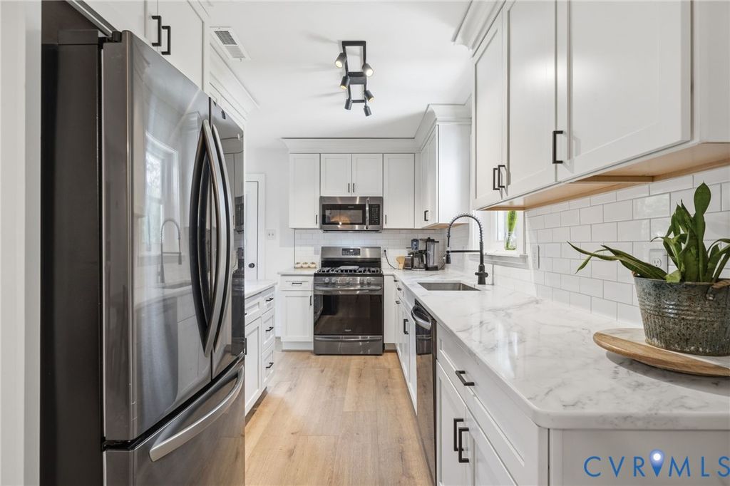 Stunning turn-key brick rancher in the coveted Westham area! This meticulously updated residence offers a seamless blend of sophisticated style and comfortable retreats. Imagine starting your mornings on the covered front porch, overlooking a serene koi pond and lush lawn. Inside, the sun-drenched living area impresses with a soaring ceiling, brand new floors, recessed lighting, and tons of natural light from brand new windows throughout the entire home. With over 3000 square feet of space, you will not outgrow this one! The recently fully renovated gourmet kitchen boasts sleek gas cooking, custom cabinetry, tile backsplash, refined countertops, and all new flooring, making it the perfect hub for culinary exploration. Retreat to the main-level primary suite featuring an en-suite bath, while the fully finished walk-out basement provides versatile zones for a professional home office, gym, or media room with built-in storage. As an added bonus, the basement includes a kitchenette and a fridge for seamless entertaining! Outdoor enthusiasts will cherish the expansive privacy-fenced backyard, complete with a sprawling deck for summer gatherings. The massive detached shed serves as an ideal workshop with its convenient second-story storage. Significant mechanical updates include a 2017 roof, 2021 water heater, and multi-zone HVAC units. The basement is also equipped with a radon mitigation system and a bone-dry gravity drain system for added peace of mind! Electrical system fully updated w/a newer 200 amp panel. Enjoy unparalleled convenience with a circular driveway and a location just steps from The Village Shopping Center and Ukrops Market Hall. The highly sought-after Tuckahoe and Freeman schools, along with Richmond's finest dining and local hotspots, downtown RVA, Pony Pasture, Richmond airport, University of Richmond, VCU are all within easy reach. This home will NOT last! Schedule your tour today and discover why this exceptional property is the perfect place to call home!