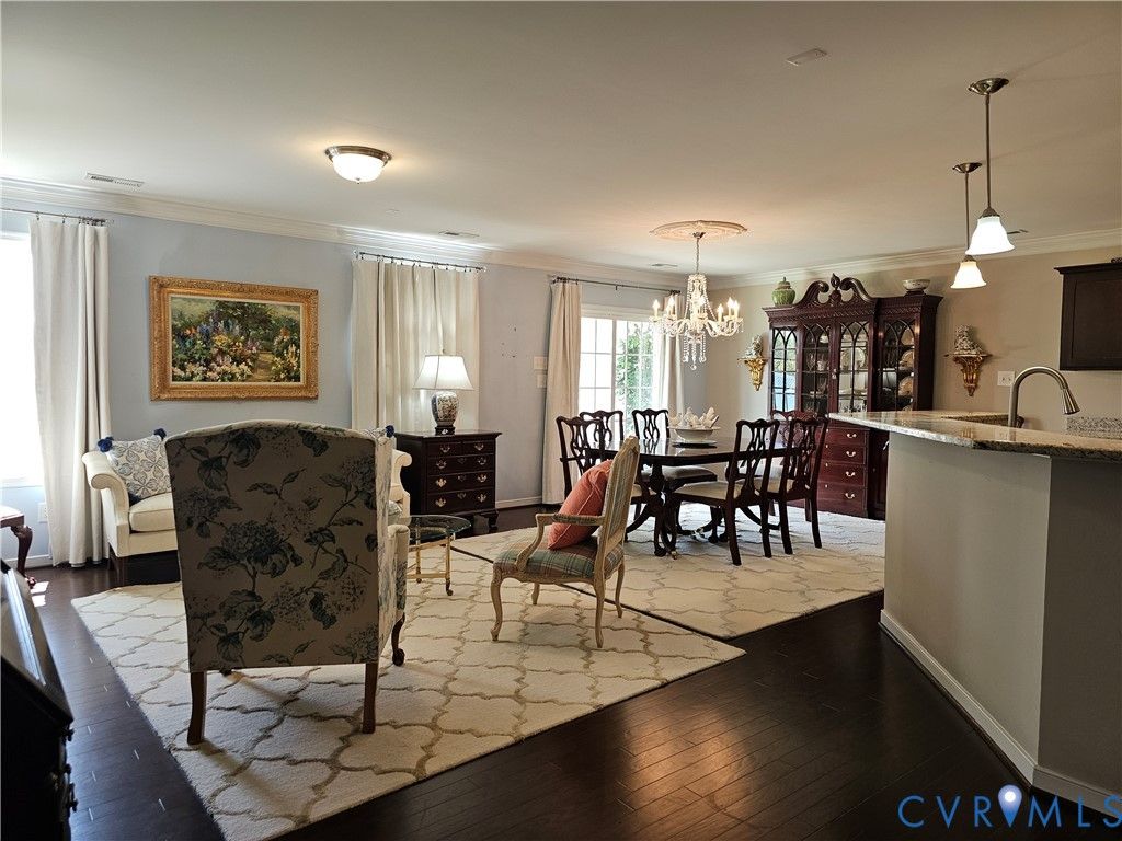 One level living in Cherry Grove! This beautiful home with an open floor plan includes a gourmet kitchen with plenty of counter space and granite countertops, sophisticated dining area overlooking the covered patio and living room. Large windows bring the outdoors in. The primary ensuite bedroom has a spacious bath with walk-in shower and a large walk in closet. The second bedroom has a nicely sized closet. The second full bath is off the entrance foyer and serves as a powder room as well. Other rooms include a pantry and a laundry room. It has off street parking and a two car garage. Amenities of the community include a Clubhouse with exercise room, kitchen for entertaining and outdoor grills and picnic area, Pickle Ball Court, Putting Green and a walking trail. Cherry Grove is superbly located just off I295 and is very convenient to downtown Richmond and the Richmond International Airport. Williamsburg and Fredericksburg are less than an hour drive away.