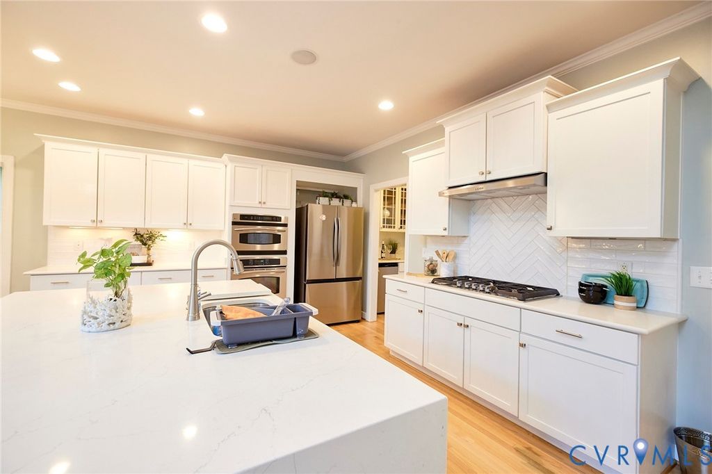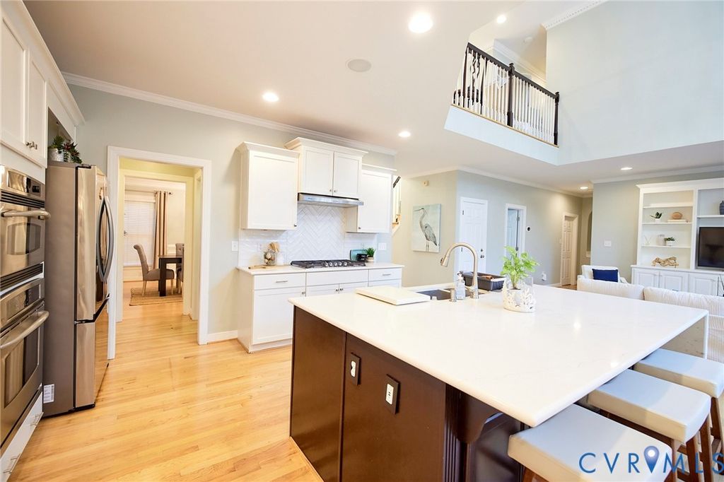 Welcome to this exceptional 6+ bedroom, 5.5 bath luxury home in Waters Edge at Twin Hickory, one of Short Pump's most sought-after communities, located in the top-rated Deep Run High School district. Tucked away on a quiet cul-de-sac and set on a rare 0.43-acre private lot backing to common area, this home offers the perfect blend of space, privacy, and upscale living. Step into a grand two-story foyer with soaring ceilings, gleaming hardwood floors, and abundant natural light. The main level features formal living and dining rooms with elegant moldings, along with a private office with French doors"”ideal for working from home. The gourmet white kitchen is designed to impress, featuring granite countertops, an oversized island, stainless steel appliances, gas cooktop, custom cabinetry, butler's pantry with wine cooler, and a spacious walk-in pantry. The kitchen flows seamlessly into the inviting family room with built-ins and a gas fireplace, creating the perfect space for everyday living and entertaining. The first-floor primary suite offers a private retreat with a sitting area, large walk-in closet, and a spa-like bath with soaking tub, dual vanities, and separate shower. Upstairs, you'll find spacious secondary bedrooms, multiple en-suite baths, and a versatile loft. The fully finished walkout basement expands your living space with a wet bar, recreation area, fireplace, and additional bedroom"”ideal for guests or multi-generational living. Enjoy outdoor living in the beautifully landscaped, private backyard. Additional highlights include a 3-car garage, ample parking, and access to community amenities including pool, tennis courts, parks, and walking trails. Located minutes from Short Pump shopping, dining, and major highways, this home offers luxury, convenience, and lifestyle"”all in one.