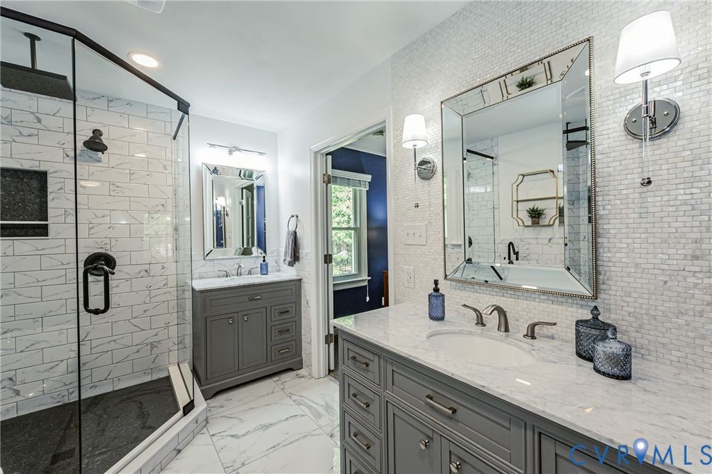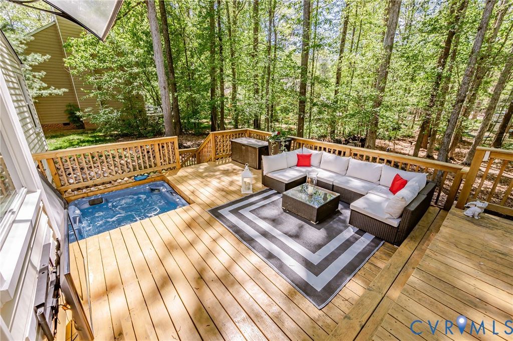 Welcome to 3006 Sagebrook Court, a beautifully updated 5-bedroom, 3.5-bath home nestled in the sought-after Brandermill community! This spacious and thoughtfully designed home offers comfort, style, and functionality. Featuring TWO primary suites! The FIRST FLOOR PRIMARY is complete with an updated bath, tiled shower, and spacious walk-in closet. The SECOND FLOOR PRIMARY features a fully renovated (2025) spa-like bathroom with a spacious custom tile shower, soaking tub, dual vanities with quartz countertops, and tile floors. A large walk-in closet provides plenty of space for your wardrobe. The chef's kitchen is a true standout, boasting gas cooking, quartz countertops, stainless steel appliances, and a sliding window that frames a stunning view of the park-like backyard and deck. The finished third floor offers incredible flexibility with its own dedicated HVAC system, ideal for a bedroom, playroom, home office, or additional living space. This home has been extensively updated, including new HVAC systems for the first and second floors (2024), new carpet (2025), a new water heater (2025), and new windows throughout (2021). Step outside to enjoy the ultimate outdoor living experience with two levels of decking and a hot tub that conveys, perfect for relaxing or entertaining guests. The charming backyard bridge connects to a common area and playground. The two-car garage offers plenty of storage with easy attic access and ample space for vehicles, tools, and hobbies. Brandermill features 15 miles of paved walking trails and connects to the 1,700-acre Swift Creek Reservoir. The community also offers three pools, multiple playgrounds, and access to boating, kayaking, beautiful sunsets, and neighborhood activities. Lovingly maintained by the current owners, this home reflects true pride of ownership and is ready for the next owner to enjoy.