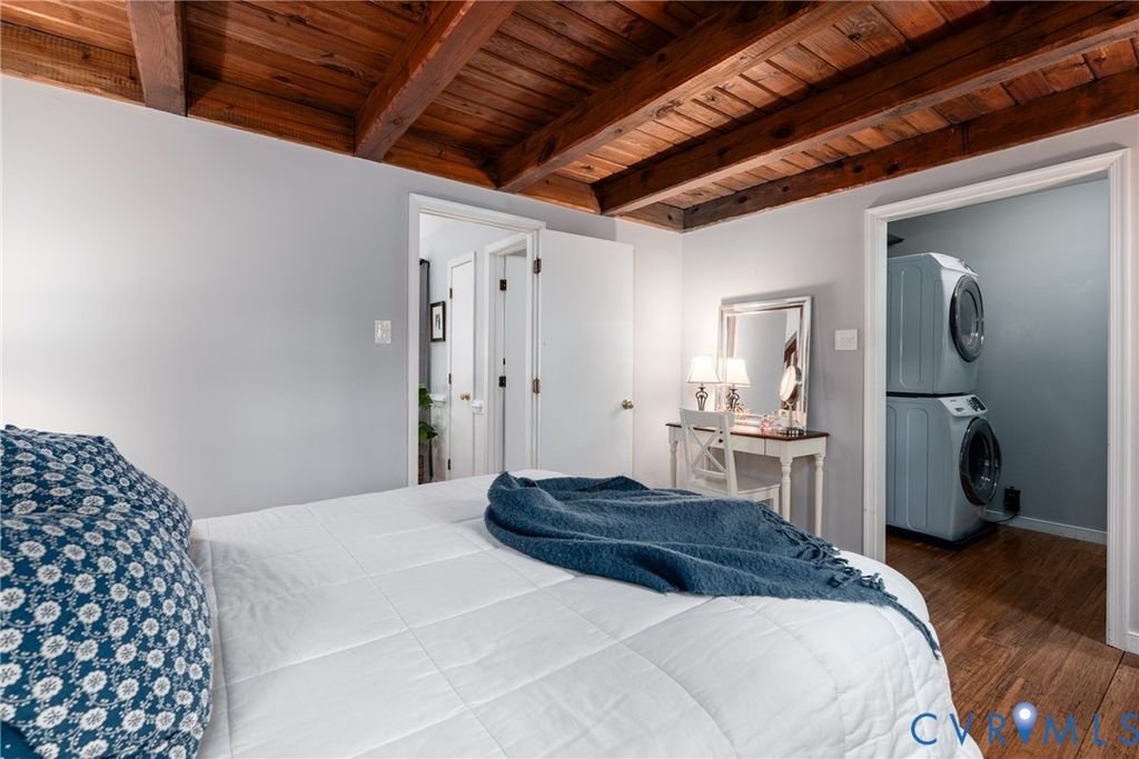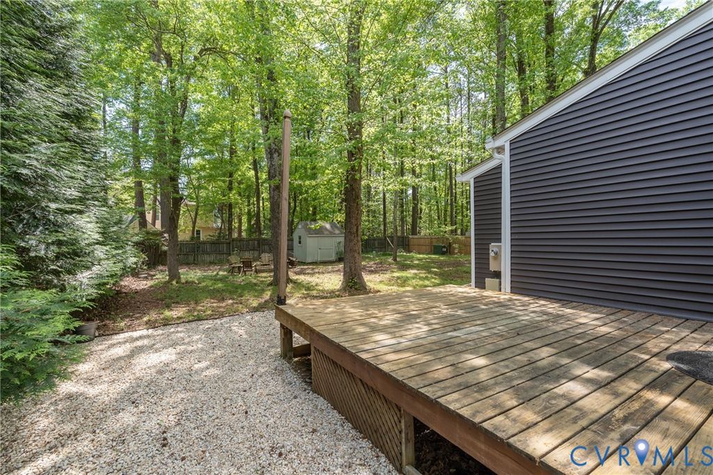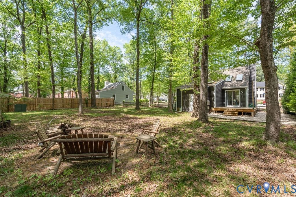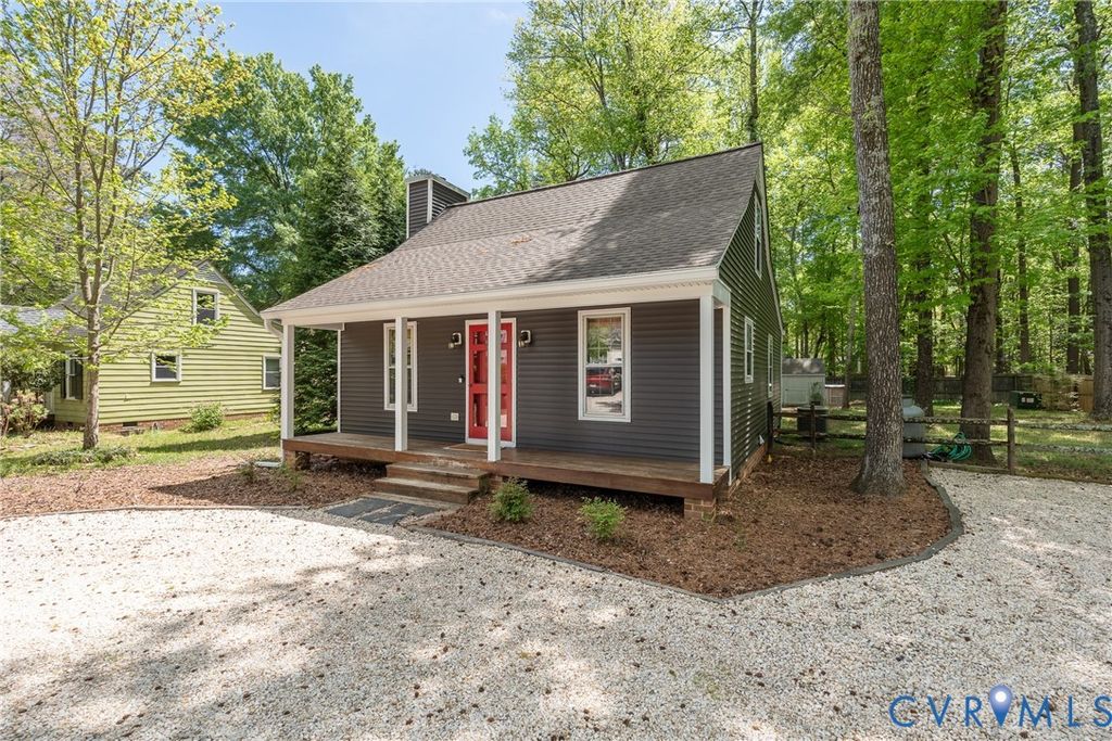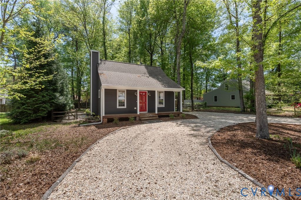 Nestled on a private quarter acre just minutes from the city, this charming, move-in ready home offers a warm, cabin inspired feel with thoughtful updates throughout. Inside, the living room features soaring ceilings and skylights that fill the space with natural light, creating an open and inviting atmosphere. A working propane fireplace anchors the space, complemented by bamboo flooring on the main level and pine floors upstairs for added character. The kitchen flows seamlessly into the living area, offering a functional layout with updated finishes, ideal for both everyday living and entertaining. The primary bedroom provides a comfortable retreat with access to a full bath and a spacious walk-in closet featuring built-in shelving and a convenient stackable washer and dryer. Upstairs, a lofted space overlooks the main living area and offers flexibility as a home office, guest bedroom, or creative studio, enhancing the home's unique design and livability. Surrounded by nature, the backyard creates a peaceful setting for relaxing or entertaining, complete with a traditional fire pit, storage shed, and plenty of room to gather. A circular stone fill driveway provides ample parking and adds to the home's curb appeal. Major system upgrades offer peace of mind, including a new heat pump and air handler (2026), tankless propane water heater (2022), conditioned crawl space with encapsulation liner (2021), upgraded 6 inch seamless gutters with Leaf Proof guards (2022), and a newer roof (2021). Additional features include updated siding, gas range, digital thermostat, and a flood sensor at the washing machine. Located in Richmond's Westover Hills area, this home offers quick access to Forest Hill Park, the James River, local shops and dining, and downtown Richmond, blending charm, convenience, and lifestyle.