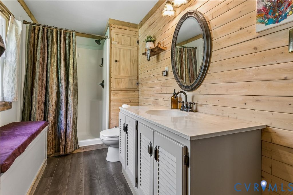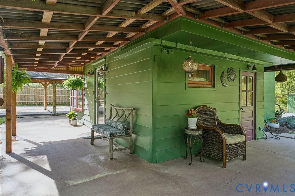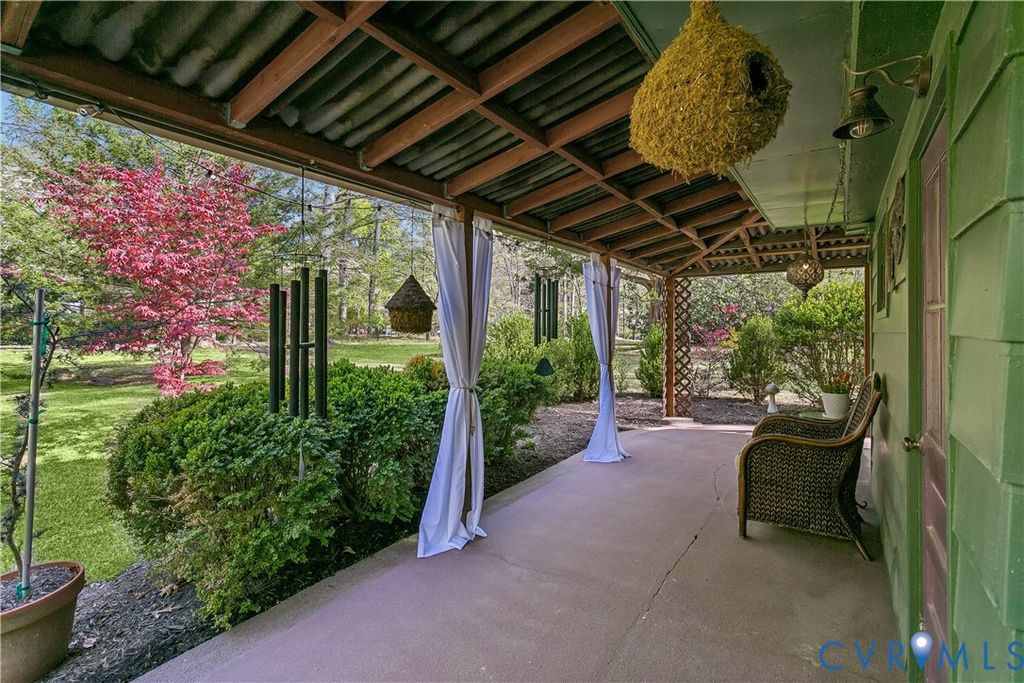 One Acre+ Property with a Charming 2-bedroom, 3-bath Home, offering privacy & character. Relax on the inviting wraparound front porch or entertain on the rear deck surrounded by mature cedar, oak, & maple trees, along with raspberry, blackberry, elderberry, & peach plantings. Inside, the updated home w/ artistic flare features an inviting family room open to the kitchen, laundry, full bath. Upstairs is a primary bedroom with bath & guest bedroom with hall bath. The house has new plumbing & electrical, plus an HVAC system with ozone air purifier & HEPA filtration, & a whole-home water filtration system. The roof is 5 years old with 30-year architectural shingles. Zoned Rural Residential with no HOA, there's freedom to farm, garden, own chickens or store your RV, Boat or Trailers. The property includes a covered carport & workshop with electric, a 2nd carport, 2 storage sheds, & 30x30 concrete slab with electrical ready for your next project. York County Schools and close to interstates, downtown Colonial Williamsburg & Busch Gardens.