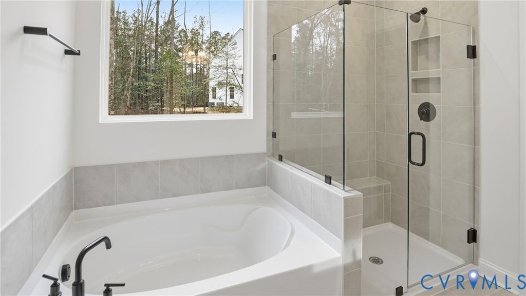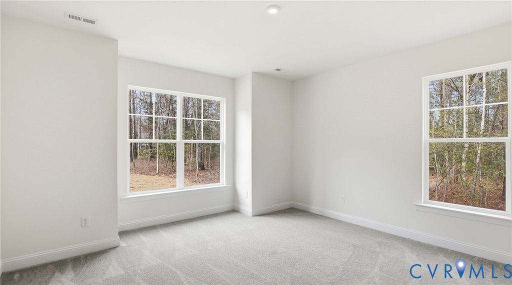 This home is MOVE IN READY! The Asheboro offers FIRST-FLOOR LIVING with 3 bedrooms, 2.5 baths and a side-load garage on OVER 1.5 ACRES!! This spacious and private lot has no visibility from the road, making it the perfect retreat! A formal dining room directly off the foyer offers an ideal space for entertaining and everyday living. The kitchen, featuring an island and walk-in pantry, is open to an adjoining breakfast area and the bright and spacious family room. Off of the breakfast area, you'll find the SCREENED PORCH that is perfect for relaxing evenings and early morning coffee. Tucked at the back of the home, the private primary suite features a walk-in closet and an ensuite bath with a five-piece bath that includes a walk-in shower, soaking tub, double vanity, and water closet. Bedrooms two and three are located at the front of the home and share a Jack and Jill bath with separate vanities. A powder room for guests and a spacious laundry room complete the home. Notable upgrades in this home include additional windows, a five-piece primary bath, and a screened porch. McGhee's Outlook is a beautiful, wooded community located in Hanover County. With just 20 homesites, this neighborhood features a quiet setting and ample privacy, making McGhee's Outlook an amazing place to call home!