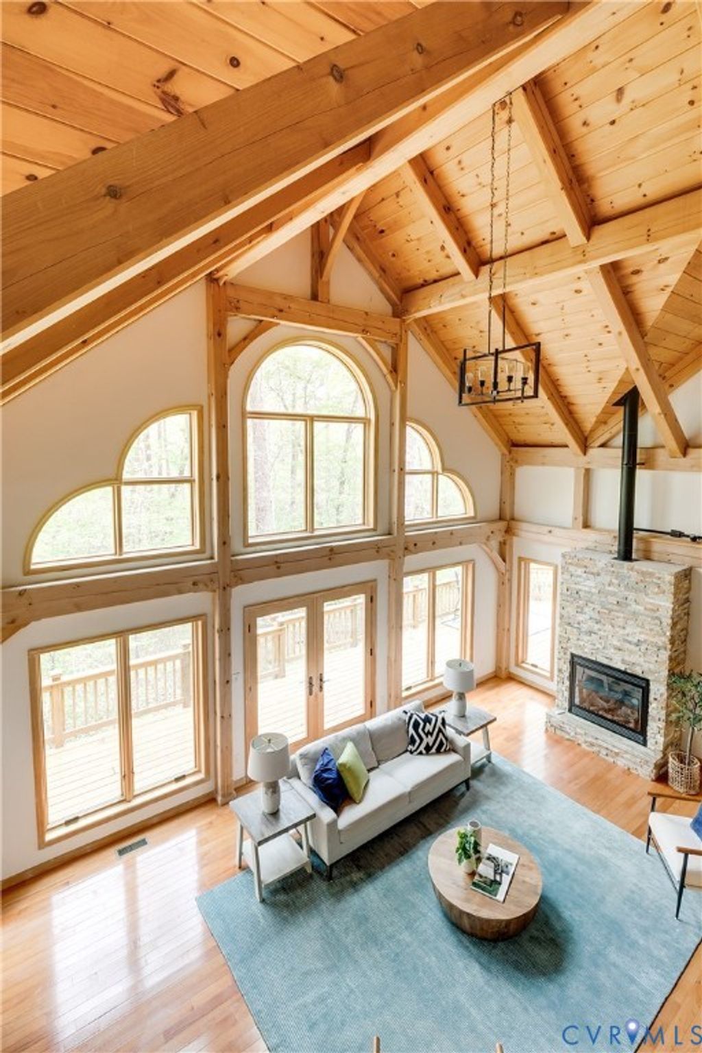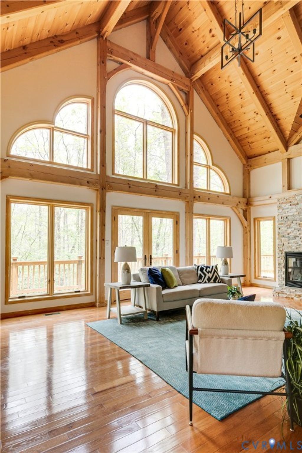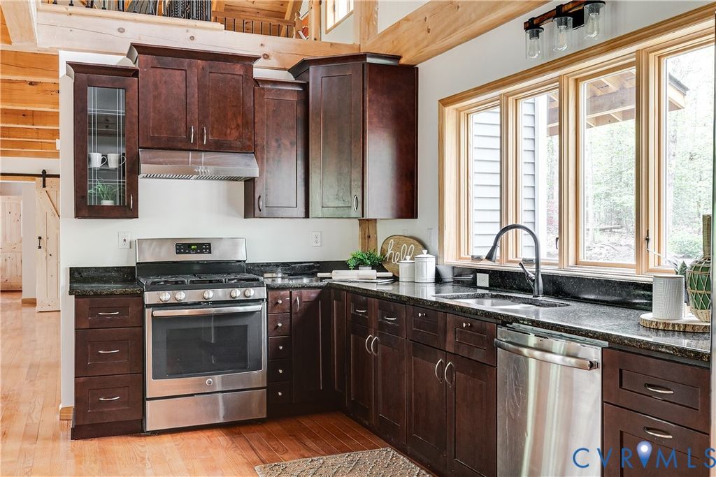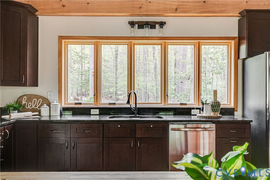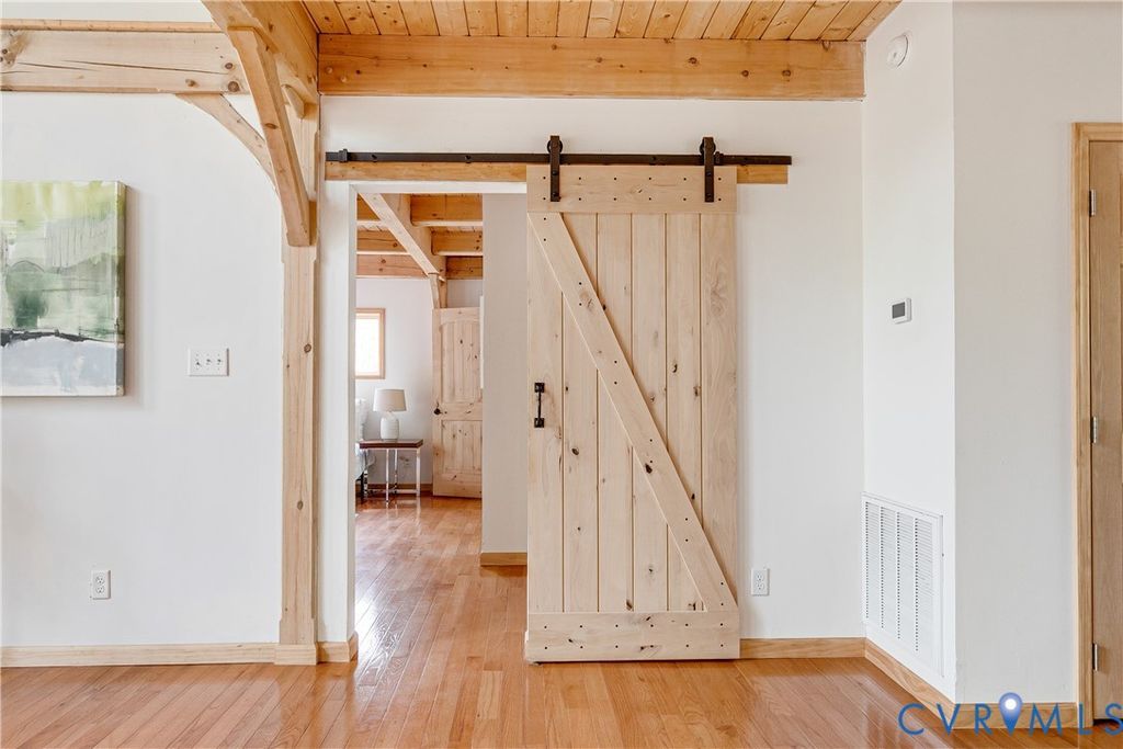 Welcome to your luxurious mountain retreat! This stunning timber-framed home, built by its original owner in 2017, showcases the perfect blend of rustic charm and modern efficiency. Upon entry, you're greeted by soaring natural timber vaulted ceilings and expansive windows that flood the home with natural light. The home is thoughtfully upgraded with Pella Pro-Series windows and doors featuring a triple close/lock system, semi-transparent screens, and exceptional insulation- paired with 6" solid foam walls and ceiling- helping keep energy costs impressively low, even in the height of summer. The first floor offers a spacious primary suite with en-suite bath and French doors leading to the back deck. Just off the living room, the dining area and kitchen are surrounded by windows and offer multiple access points to the deck- perfect for seamless indoor-outdoor entertaining. Adjacent to the kitchen is an oversized laundry room with a walk-in pantry and half bath, conveniently leading to the attached three-car garage. Upstairs, you'll find a cozy loft overlooking the vaulted living space below, along with two additional bedrooms and a full bath. Down the lofted hallway is a flexible bonus space- ideal for an office, closet, or multi-purpose use- which leads to an expansive bonus room that could serve as a fourth bedroom or recreation area. The back deck spans the entire length of the home, creating an ideal space for relaxing or entertaining. Beyond, the open backyard offers plenty of room for playsets and outdoor activities. Don't miss the private hiking trail just off the yard, winding through 10.5 acres complete with a serene creek and abundant wildlife- truly capturing all that Powhatan has to offer.