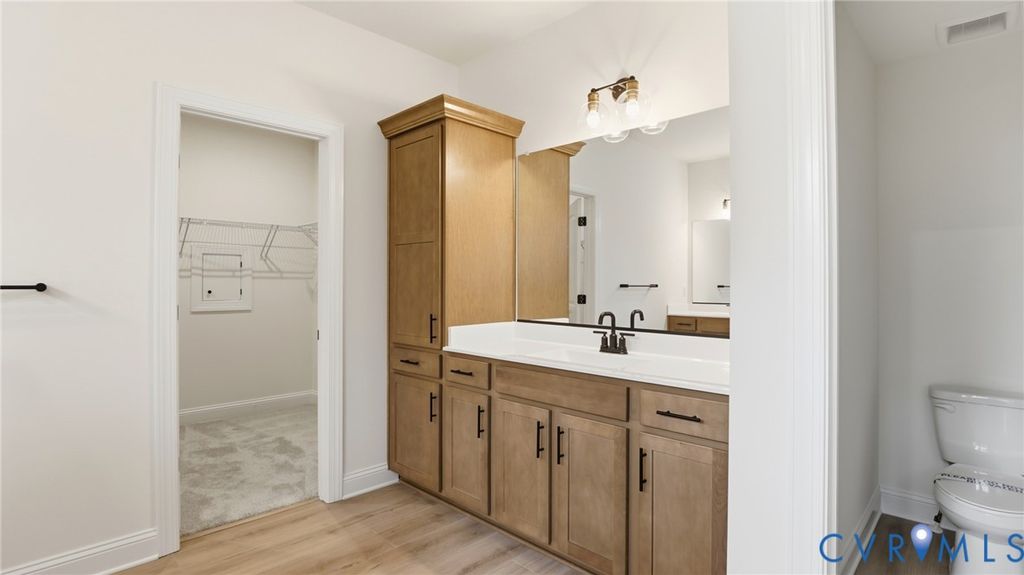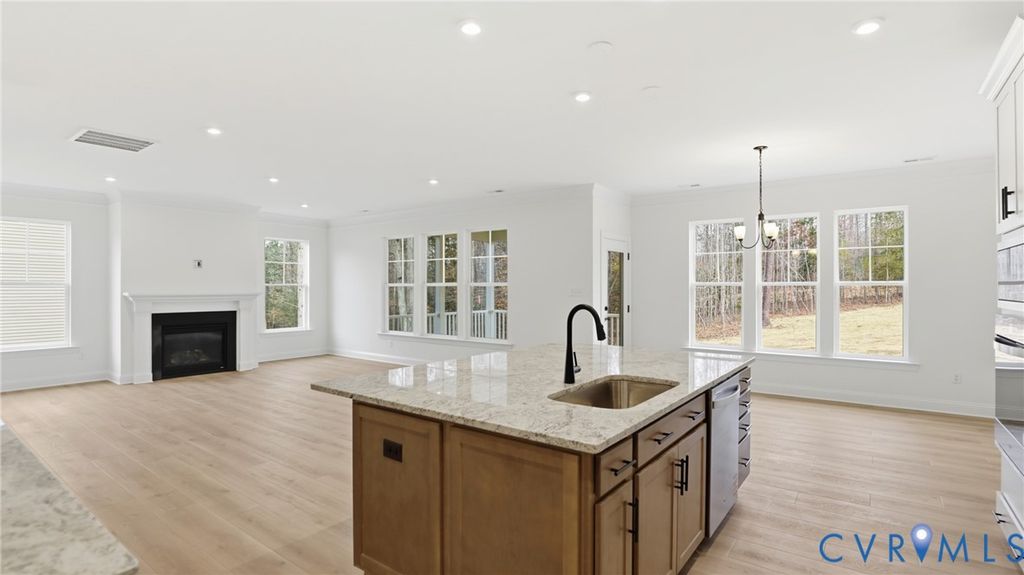 MOVE-IN READY!! Located in the age-restricted, low-maintenance enclave of Lake Margaret at The Highlands, this home offers more than just a beautiful place to live; it's a lifestyle. The Asheboro by Eastwood Homes blends thoughtful design with timeless comfort, featuring 4 bedrooms, 3.5 baths, and a desirable side-load garage. From the moment you step inside, you'll notice the warmth of EVP floors flowing from the foyer into the elegant dining area and chef-inspired kitchen. Enjoy quartz countertops, a spacious island, a walk-in pantry, and seamless flow into the cozy family room with a gas fireplace perfect for entertaining or unwinding. The main-level primary suite is your private retreat, boasting a generous walk-in closet and a spa-like ensuite with dual vanities and a tiled luxury shower. Two additional bedrooms with large closets share a stylish hall bath with a shower, while a powder room and dedicated laundry space add convenience. Upstairs, you'll find a spacious fourth bedroom, a full bath, and a versatile loft ideal for guests or a home office. Residents enjoy access to a championship 18-hole golf course, three lakefront pools with a clubhouse, tennis courts, scenic trails, a playground, and two lakes totaling 100+ acres for fishing, paddling, and canoeing. Conveniently situated between Richmond and Petersburg, you're minutes from shopping, dining, and everything in between.