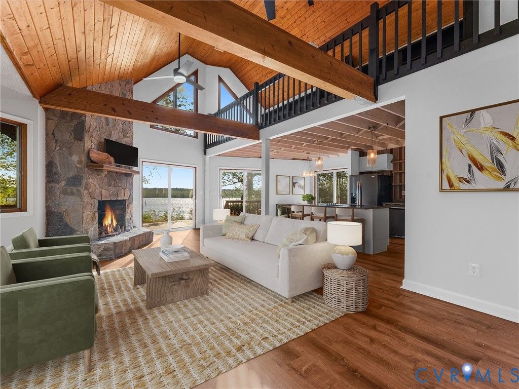Experience waterfront living at its finest on the scenic Mattaponi River. This stunning home is perfectly situated on 2 private acres, offering breathtaking river views and a peaceful, retreat-like setting. Inside, the open-concept great room impresses with soaring cathedral ceilings, newer luxury floors, and a striking stone fireplace"”all framed by windows that capture the beauty of the water. The spacious eat-in kitchen features elegant stone countertops, a center island, and charming wood beam accents, making it as functional as it is inviting. Upstairs, a bright and open landing with custom built-ins leads to the luxurious primary suite, complete with its own fireplace, vaulted ceilings with skylights, a private balcony overlooking the river, and a spa-like ensuite bath. Off the primary is an extensive theatre room with surround sound speakers, projector and large screen for cozy evenings. Outdoor living is just as exceptional, with a wrap-around deck, and beautifully landscaped grounds in bloom. Enjoy direct water access with your private pier, perfect for relaxing, fishing, or launching a kayak. A rare opportunity to own a truly special riverfront property"”offering comfort, character, and unforgettable views.