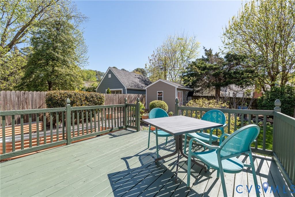 Come see this beautifully renovated Cape Cod, ideally situated on a quiet street in Clovelly Gardens. Designed for both everyday living and entertaining, the home features a bright, open layout with seamless flow between living spaces. The main level includes a spacious master suite with a walk-in closet and a fully renovated bath featuring a large tiled walk-in shower. The updated kitchen offers granite countertops, stainless steel appliances, and a breakfast bar opening to a light-filled formal dining area. A stately living room features a vented gas fireplace, while an expansive family room with built-ins, a dedicated home office, and a large laundry/storage room complete the first floor. Upstairs, you'll find two well-sized bedrooms and a tiled full bath. Notable features include newer roof (2019 & 2023), hardwood floors throughout, mini-split (2025), replacement windows, and low-maintenance vinyl siding. The fenced backyard is ideal for relaxing or entertaining, featuring a deck, custom shed (2019), firepit area, and raised garden beds. Conveniently located near the University of Richmond, within walking distance to Ukrop's Market Hall and the Village Shopping Center, and with easy access to major highways. A find that won't last in the Tuckahoe Elementary district.