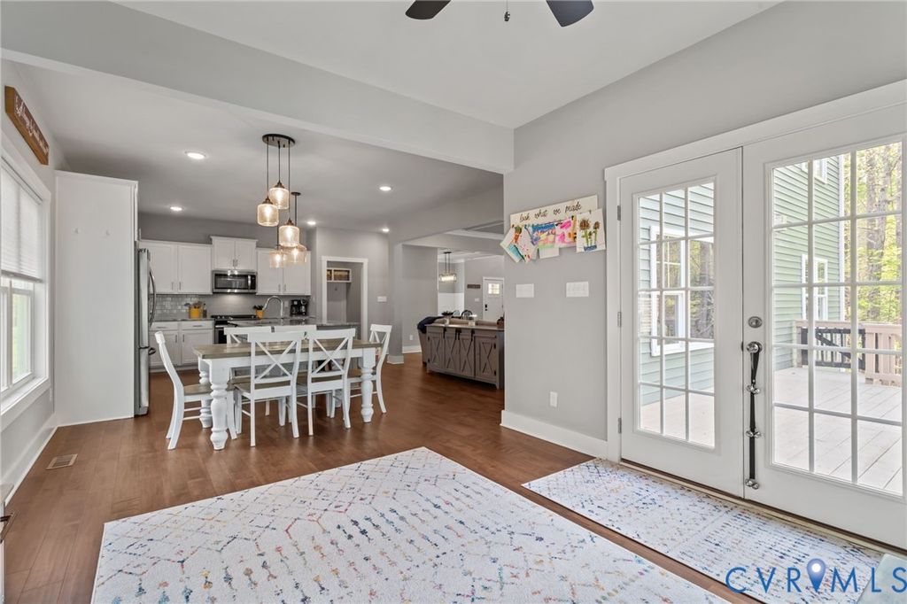 Welcome to 8400 Highmarker Court, a stunning custom-built home tucked away on a quiet cul-de-sac in the highly sought-after Highmarker section of Harpers Mill in Chesterfield, VA. Built in 2018, this beautifully designed 6-bedroom, 4 full bathroom home offers over 3,200 square feet of modern living with thoughtful upgrades throughout. Step inside to an inviting open-concept floor plan on the main level"”perfect for both everyday living and entertaining. The heart of the home features a spacious kitchen with elegant quartz countertops, custom lighting, and seamless flow into the living and dining areas. The luxurious primary suite is a true retreat, complete with a spa-like bathroom featuring dual shower heads for a relaxing experience. With six generously sized bedrooms, there's plenty of space for family, guests, or a home office setup. Outdoor living is just as impressive. Enjoy your morning coffee or evening gatherings on the large back deck overlooking a private common area that will never be built on, or entertain on the beautifully designed hardscape patio. Additional features buyers will love include a tankless hot water heater, whole-home generator wiring, and a two-car garage for convenience and peace of mind. Located within walking distance to Winterpock Elementary School and close to all that Harpers Mill has to offer, this home combines modern comfort, privacy, and an unbeatable location. Don't miss your opportunity to call this exceptional property home!
