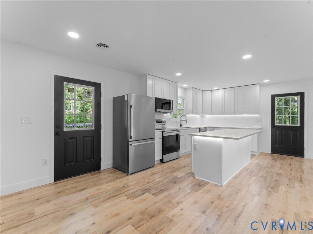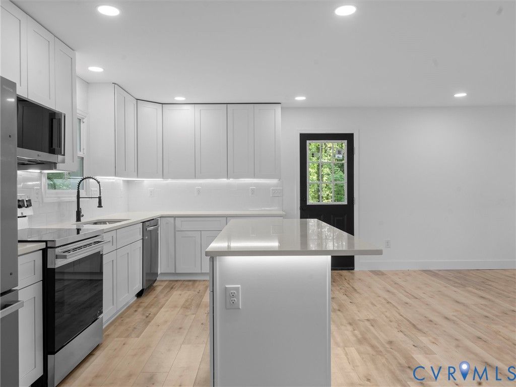 Welcome home to this spacious and versatile 6-bedroom home situated on a quiet cul-de-sac in Chesterfield County. This fully renovated brick rancher with a walk-out basement offers a rare opportunity for both homeowners and investors looking for space and flexibility. The layout is ideal for multi-generational living, home office setups, or rental potential, while the large lot provides plenty of room for outdoor enjoyment. This home has been renovated from top to bottom, with major updates including a new roof, windows, gutters, interior and exterior doors, paint, dual-zone HVAC, hot water heater, electrical, and a newly paved driveway. Inside, you'll find a bright and open layout featuring low-maintenance plank style flooring and a beautifully designed kitchen with new appliances, quartz countertops, tile backsplash, shaker-style wood cabinetry with soft-close doors and drawers, and under-cabinet lighting. The main level offers three bedrooms and two full baths, including a primary suite with a beautifully finished en-suite bath. Downstairs, the walk-out basement provides a large additional living area, game room, full bathroom, utility room, and three additional bedrooms"”offering incredible flexibility for a variety of uses. Outdoor features include a welcoming front porch, rear deck overlooking a private wooded setting, lower-level patio, and a driveway sized to accommodate the home comfortably. This property combines space, updates, and functionality in a way that's hard to find. Conveniently located with easy access to local amenities"”schedule your showing today.