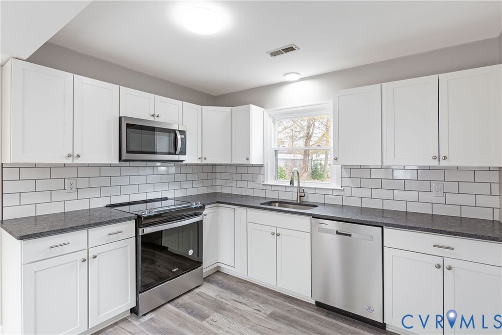 Beautifully Updated 5-Bedroom Home with Modern Upgrades Welcome home! This spacious, newly renovated property offers nearly 2,000 square feet of comfortable living space with 5 bedrooms"”4 upstairs and 1 on the main level (ideal for a home office). You'll find 2 full bathrooms upstairs plus a convenient half bath on the main level. Inside, enjoy a fresh, modern interior with new luxury vinyl plank (LVP) flooring in the main areas, new plush carpeting in the bedrooms, recessed lighting in the living room, and fresh paint throughout. The kitchen is a chef's delight with granite countertops, new cabinetry, and brand-new stainless-steel appliances. The dining area features an eye-catching chandelier"”perfect for entertaining. Updates also include new vinyl windows and a roof less than 2 years old for added efficiency and peace of mind. Additional features include a single-car garage, updated bathrooms with contemporary finishes, a spacious den with fireplace, and a separate living room. Conveniently located near parks, shopping, dining, and Interstate 95. Bonus: close proximity to Bon Secours Hospital and the new casino slated for completion in 2027. This move-in-ready home combines style and functionality in every room"”schedule your showing today! Fireplace/chimney/flue convey AS IS. Seller makes no representations as to condition