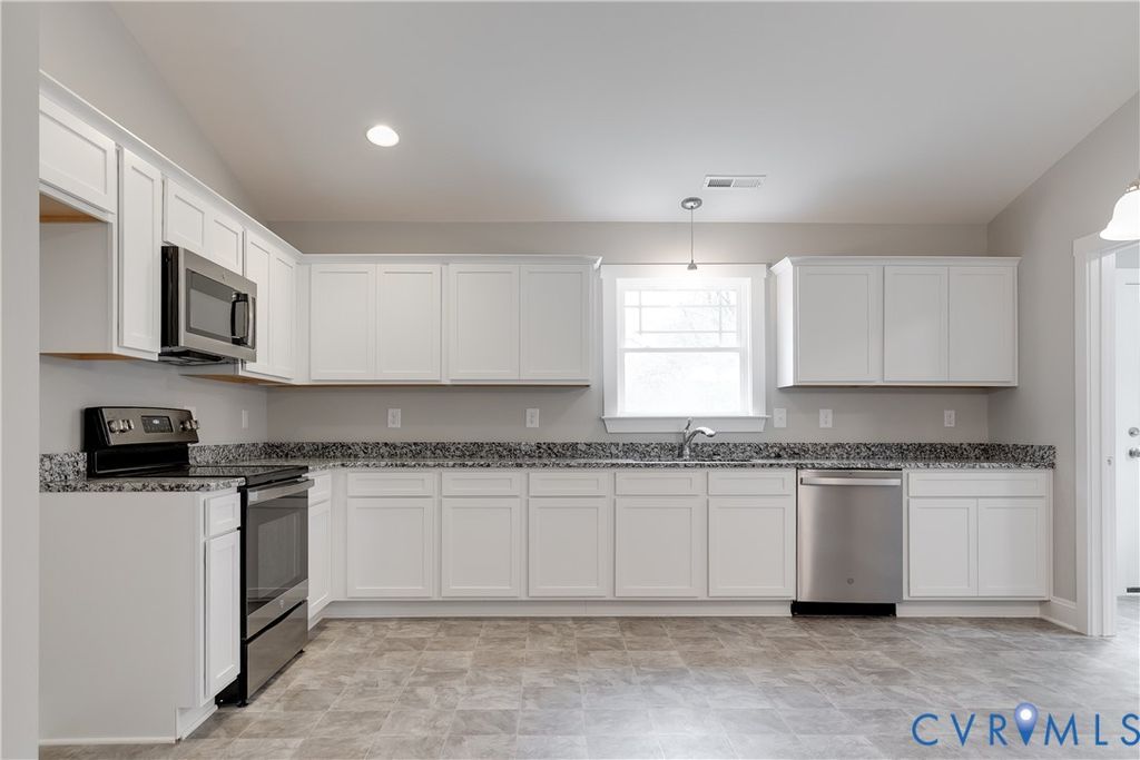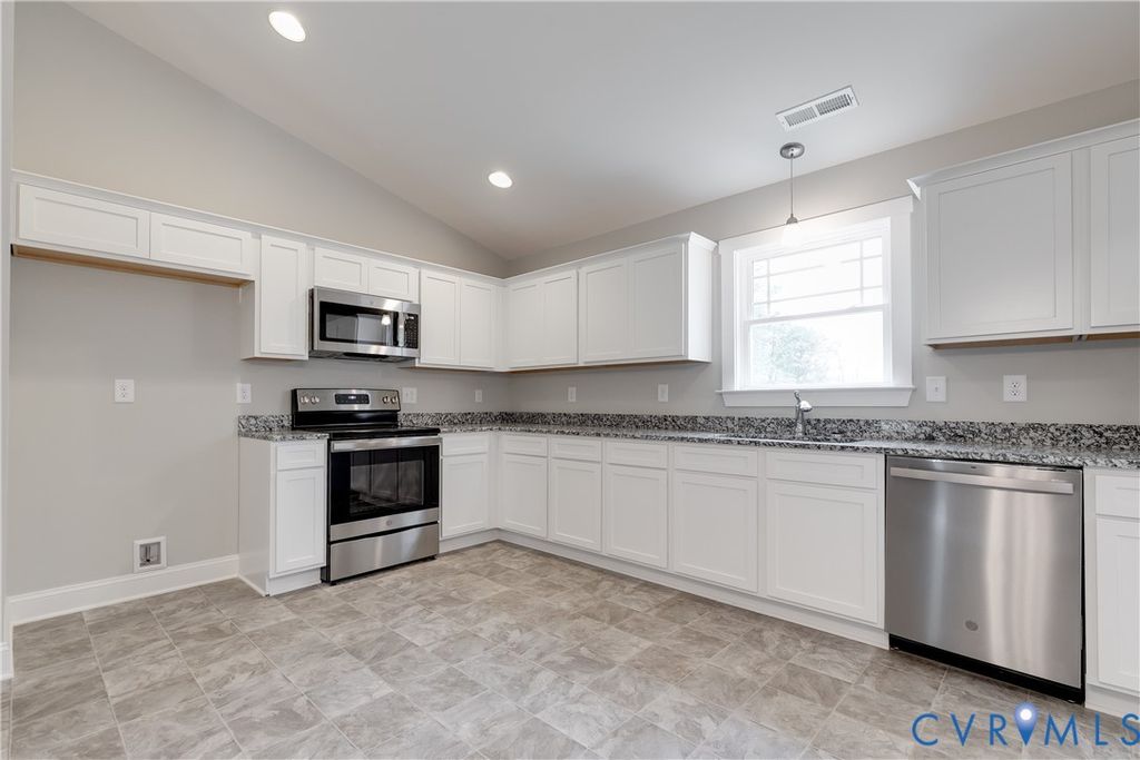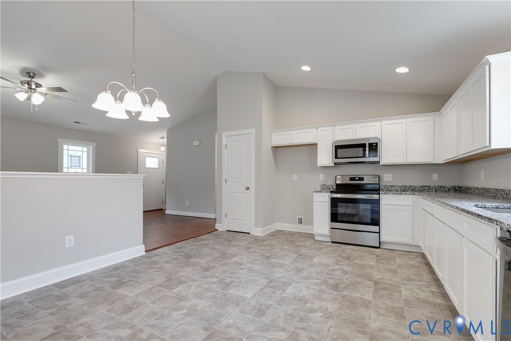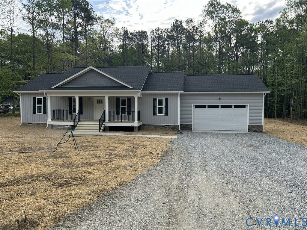 Welcome to 6731 Caboose Lane in Sandston VA. Nearly complete, this home has 1,400 square feet with 3 bedrooms & 2 bathrooms, a large 2-car garage, and is situated on a level 1.031-acre lot. Upon entering the home you're greeted by beautiful LVP flooring, vaulted ceilings, and an open concept design. The kitchen includes beautiful white cabinetry, granite counters, LVP flooring, stainless appliances, and loads of cabinet storage & counter space. The laundry is nicely tucked away on the rear of the home providing quick access to the rear deck and garage, plus it is away from the bedrooms for a more peaceful night's rest while a load is being washed. Down the hall you'll find the spare bath, 2 nicely sized bedrooms, and the primary suite. Each of the spare bedrooms have carpet, good closet space, and are prewired for ceiling fans. The primary features excellent wall spacing for furniture, a large walk-in closet, and a private bath. Outside the home you have a wonderful covered front porch, 12' x 12' rear deck, and a beautiful lot on a quiet cul-de-sac. This home provides a wonderful opportunity to enjoy country living and the benefits of new construction. PHOTOS IN MLS ARE OF HOME WITH SAME FLOOR PLAN AND SIMILAR FINISHES, FOR EXAMPLE ONLY**Please see supplements for floor plan, survey, & spec sheet** HOME SHOULD BE COMPLETE IN EARLY MAY 2026. Thanks for visiting, we hope you call it HOME!