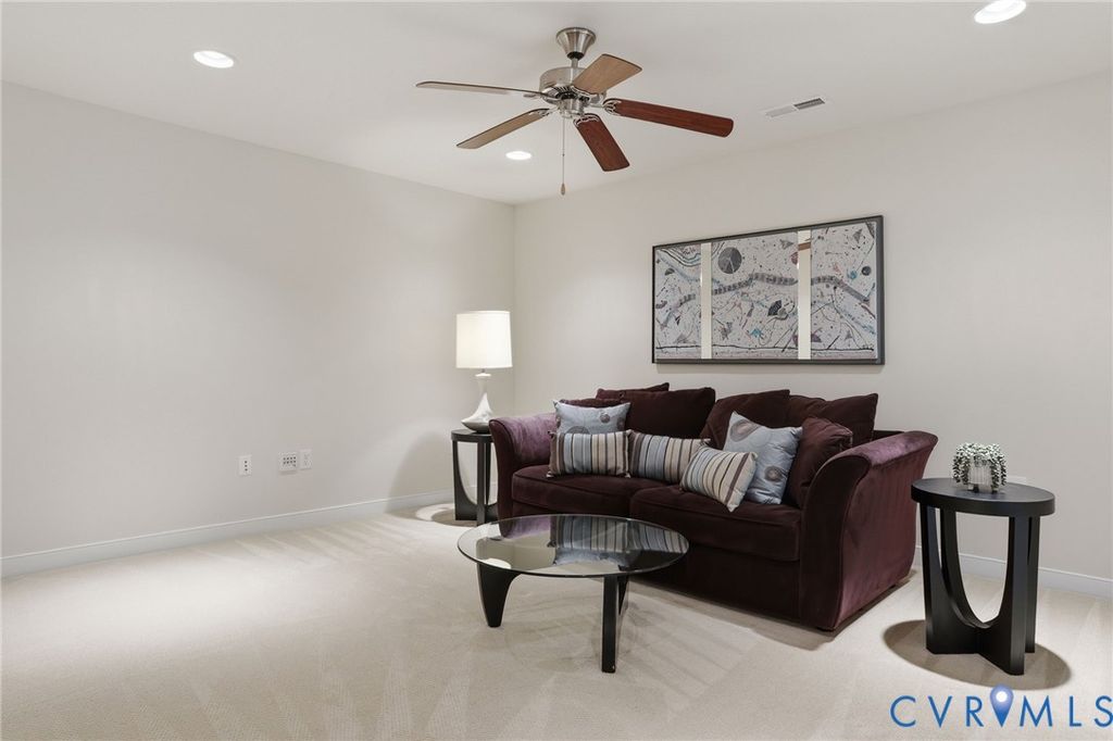 Welcome to 3465 Manor Grove Circle in the 55+ community of The Manor at Hunton Park. This quaint community is tucked at the back of Hunton Park conveniently located at route 33/295 interchange. The gated community offers easy living with quiet walks through the neighborhood, its own pool and club house. First level living at its best with a large primary bedroom that has dual closets and a generous en suite bathroom. The tiled bathroom has an oversized double vanity with plenty of storage, big jetted tub for relaxing, separate shower and water closet for privacy. The open living space downstairs contains wood floors, lots of windows for natural light, recessed lighting, ceiling fan, fireplace and crown/picture molding. The half bath and laundry room are located at the front between the front door and attached garage for convenience. The oversized , 2 car garage is perfect for storing your vehicle as well as recreational equipment and overhead storage if needed. The eat in kitchen has granite countertops, island, bar to the living room, double oven, Palladian window and pantry. Formal dining with tray ceiling, molding and a morning room that offers more space, natural light and easy access to the private patio for indoor/outdoor entertaining. Upstairs you will find a loft space for additional living, a closet for storage and two bedrooms that share a Jack & Jill bathroom, each one with their own vanity and toilet for privacy. The front bedroom has two large closets, one being used for a sewing/craft room. The third floor has been partially finished to use as an office/studio/workout/meditation room and perfect for a caregiver or guest room. Adjacent attic space remains unfinished and ideal for additional storage. Easy to show and ready for you to call it home!