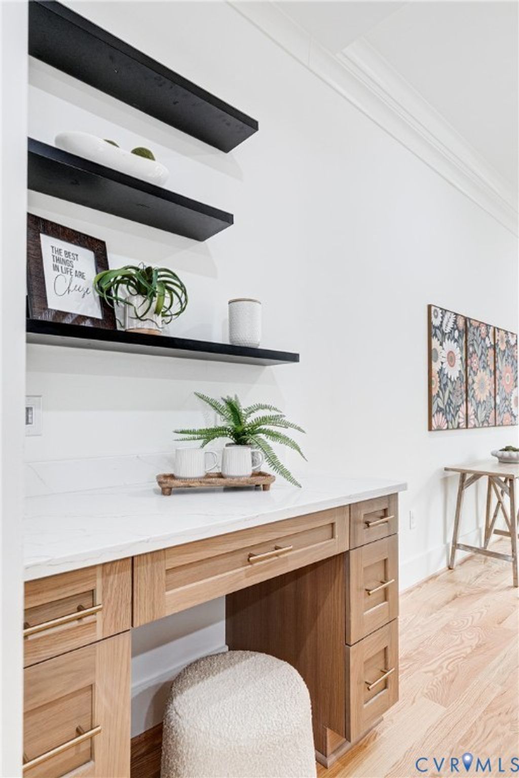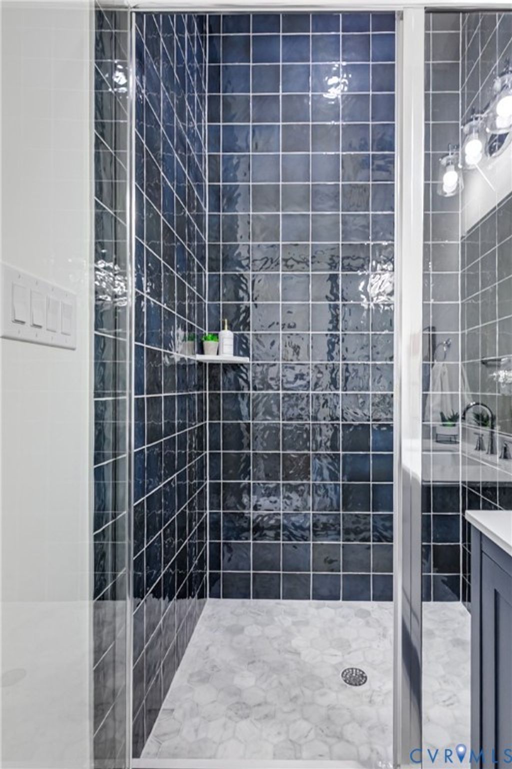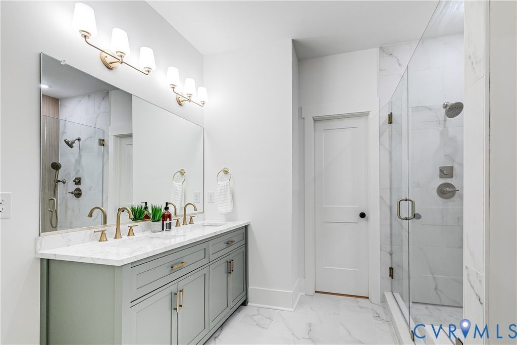 Welcome to 909 N 36th St"”one of Church Hill's most exciting new offerings! Set along a gorgeous block of newly completed row-homes, this thoughtfully designed home blends timeless curb appeal with modern comfort. A wide front porch with a standing seam metal roof sets the tone for the craftsmanship found throughout. Inside, you'll find hardwood floors, 10' ceilings, recessed lighting, a fireplace, and a custom trim package that brings warmth and character to the space. The light-filled living room flows effortlessly into the dining area and kitchen"”ideal for both everyday living and entertaining. The kitchen is a true standout, featuring an 8-ft waterfall island with seating and pendant lighting, quartz countertops, tile backsplash, soft-close cabinetry with dovetail drawers, in-cabinet lighting, high-end stainless steel appliances, a spacious pantry, and a full bar area. At the rear of the home, the first floor offers a flexible bedroom or office paired with a full bath showcasing a walk-in shower with tile surround and designer finishes. A 1-car garage with a 100-amp panel adds convenience and functionality. Upstairs, hardwood floors continue throughout. Two rear bedrooms offer generous closet space, recessed lighting, and ceiling fans, and share a Jack and Jill bath with a well-appointed vanity, tiled floors, and a tub/shower combo with tile surround. At the front of the home, the primary suite impresses with custom trim, a vaulted 10' ceiling, cozy fireplace, and three closets"”including a large walk-in. The ensuite bath features a glass-enclosed walk-in shower, stylish tile work, and a dual vanity. Outside, enjoy a fully sodded yard, classic picket fencing in the front, privacy fencing in the rear, and dusk-to-dawn lighting. All just a short walk to Chimbo Park, Peaberry Coffee House, Grisette, and many of Church Hill's favorite spots. Thoughtful design, quality craftsmanship, and an unbeatable location"”just a few reasons to call 909 N 36th St home.
