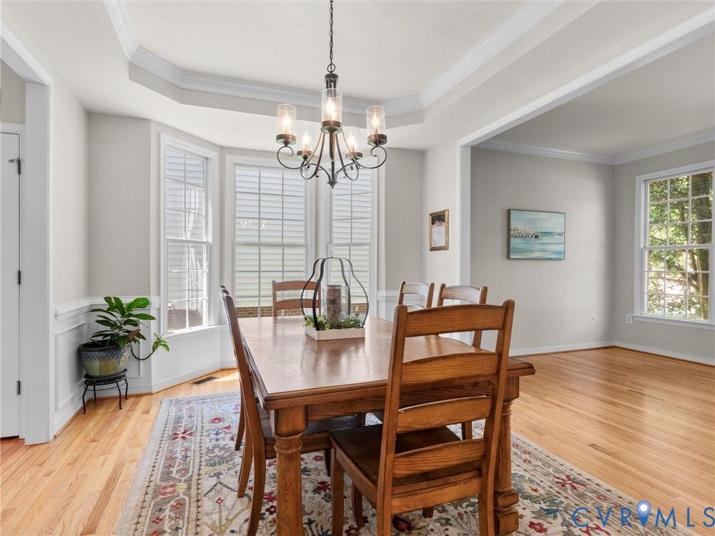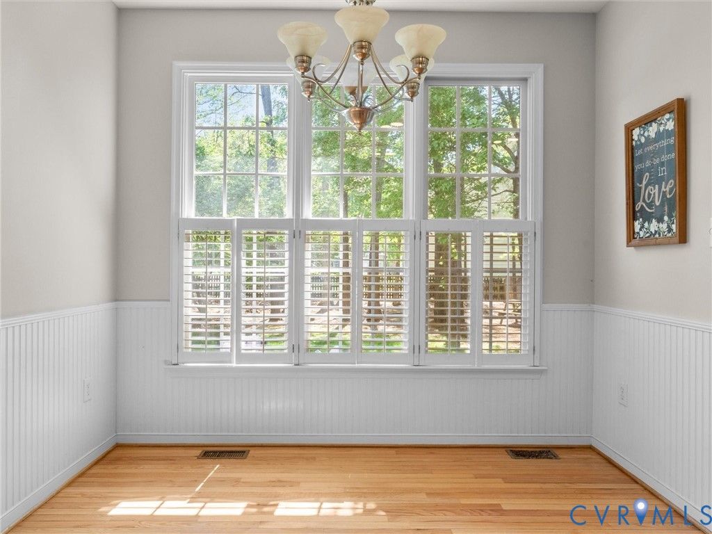 Welcome to this lovely, well-maintained home in the highly sought after development of Twin Hickory! This house offers plenty of space for everyone in addition to a large, beautiful corner lot and a lovely, fenced, private back yard. Fall in love the newly added patio and lights! Once inside, you will notice that the entire downstairs boasts newly refinished hardwood flooring, open spaces and 9' ceilings in addition to plenty of handsome wainscoting. The living room can double as an office space or playroom and is open to the dining room which includes a tray ceiling and bay window, allowing wonderful natural light to fill the space. The kitchen provides you with stainless appliances, granite countertops, hardwood flooring and openness to the family room - great for entertaining or just relaxing with your family. The Palladian window adds a lovely touch! Enjoy overlooking the back yard and patio from the family room which features a fan and gas fireplace. Ascend the stairs to find 4 bedrooms - all good sizes. There is plenty of room to grow in this 4BR, 2.5BA home with a finished third floor bonus space. Ideal for work, play, 5th bedroom, or guests, the upper level adds valuable flexibility. Don't miss the walk-in attic storage! Located in the Deep Run High, Short Pump Middle, and Twin Hickory Elementary school district - all within walking distance. You do not want to miss the opportunity to own this move-in-ready, well-rounded home with space for everything! New roof in 2017, brand new front door, newly refinished floors, and the addition of leaf guards! Schedule your showing today.