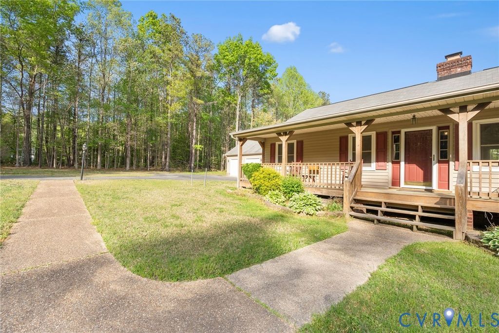 Set on 15 private acres in Providence Forge, this private country property offers space, flexibility, and true one level living. The home features 3 bedrooms, 2.5 baths, and a comfortable, functional layout designed for everyday ease. A striking brick fireplace anchors the main living area, creating a warm and inviting focal point.Outside, enjoy a covered front porch and rear deck overlooking wooded acreage, ideal for quiet mornings and evenings. The oversized detached garage provides excellent space for storage, hobbies, or a workshop, with unfinished space above ready for a home office, guest suite, or additional living area.With no HOA, this property is well suited for those seeking acreage, privacy, and potential for a mini farm, home business, or recreational use. Conveniently located in New Kent with easy access to Richmond and Williamsburg, this is a rare opportunity to enjoy country living without sacrificing accessibility.