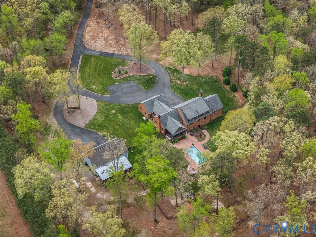 An extraordinary private estate where timeless elegance meets refined modern living. Set on 8.5± beautifully landscaped acres, this exceptional property offers a rare blend of luxury, privacy, and thoughtful design. At the heart of the home is a true chef's kitchen, featuring a Bertazzoni range imported from Italy, Frigidaire Professional refrigerator, Fisher & Paykel dishwasher, custom tile backsplash, quartz counters, custom cabinets and hood, and an oversized island perfect for gathering. The home showcases rich architectural detail with four fireplaces, custom millwork, and open, inviting spaces. The impressive family room offers a vaulted ceiling, built-ins, and a wet bar with wine refrigeration"”ideal for entertaining. Formal living and dining rooms add elegance, while hardwood floors run throughout the first and second levels. The primary suite offers two walk-in closets and a beautifully updated bath with a freestanding soaking tub, custom tile shower, dual vanities, and makeup vanity. Upstairs, two spacious bedrooms (one with dressing room-style closet), an updated hall bath, and cedar closets complete the level. The lower level includes a second family room with wood-burning stove, sauna, bedroom, flex space, full bath, and areas for fitness or hobbies. Enjoy your own private outdoor retreat with a vaulted screened porch overlooking the gunite pool, custom herringbone brick surround, and brick firepit"”perfect for relaxing or entertaining. Additional features include a detached 3-car garage with 10' doors, circular driveway, raised garden beds, thoughtful landscaping and extensive improvements. Dual 1,000-gallon propane tanks, a Generac generator, and solar panels add efficiency and peace of mind. A rare offering of space, sophistication, and lifestyle"”Virginia estate living at its finest.