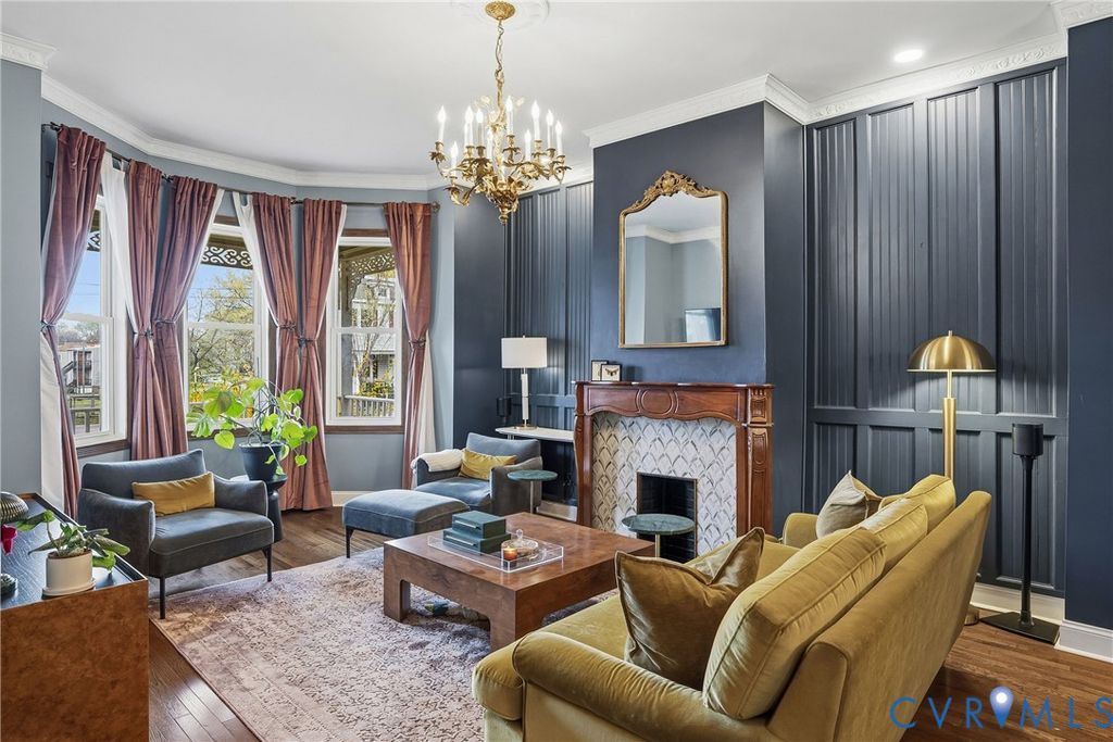 Own a piece of Richmond's history with this stunning Churchill Victorian, thoughtfully restored with modern-Victorian design and charm. Recently gutted and fully renovated, the home features structural updates, new electrical and plumbing, curated antique lighting, wood window trim, fresh paint, a new water heater, and extensive landscaping. The front porch has been completely rebuilt, including roof, trim, and decking, while a shaded garden sits beneath a mature Chinese Holly. A marble-tiled vestibule opens to the Great Room with new solid oak flooring, 10-foot ceilings, wainscoting, Art Nouveau crown molding, and two carved wood fireplaces with abalone tile. The powder room features a historic high-tank toilet and brass fixtures. The kitchen offers abundant cabinetry, open shelving, a window bench, Samsung Bespoke appliances, and a KitchenAid gas range. A spacious laundry/utility room includes butcher block counters and storage. Upstairs, a rebuilt staircase with solid maple treads leads to the primary suite with custom closets, a marble walk-in shower with dual heads, towel warmer, and double vanity. Two additional bedrooms and a hall bath with a clawfoot soaking tub complete the second floor. The double lot offers a large deck with ceiling fans, a stone patio, perennial landscaping, a saltwater pool with wraparound decking, new fencing, two sheds, and off-street parking for 3+ vehicles or an RV. Fully paid solar panels reduce energy costs. Dual HVAC systems serve each floor (2020 and 2023).