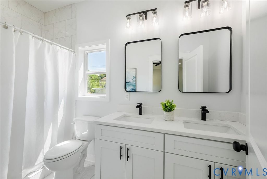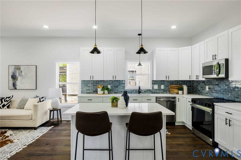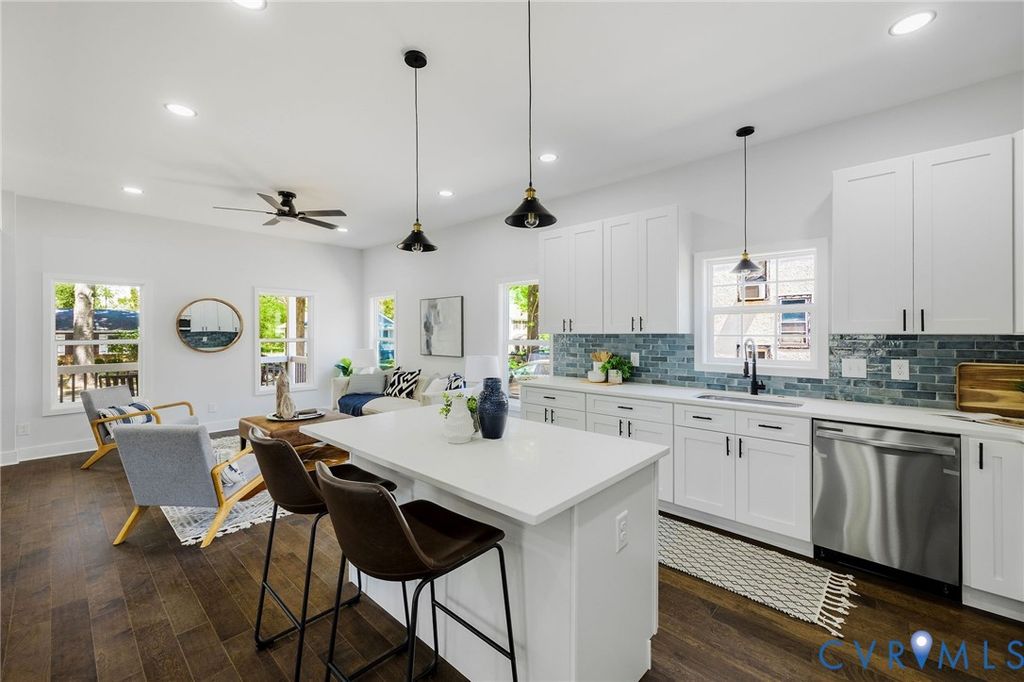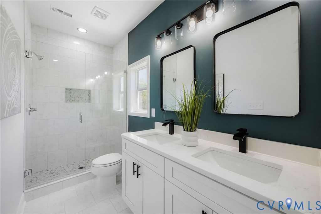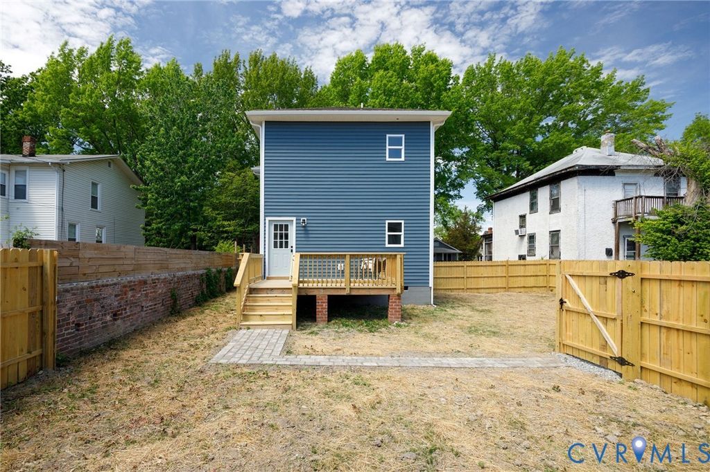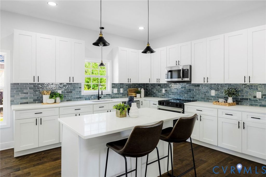 INSPIRED TWO-STORY REIMAGINED CRAFTSMAN WITH FIRST & SECOND FLOOR PRIMARY SUITES!! Marvelously detailed 2352 sq ft 4 bedroom 3.5 bath craftsman with a unique new open concept plan! First floor features a dynamic quartz/stainless kitchen with extensive cabinet/counter space & island, highlighted by a neat pendant/recessed lighting package & stunning "Petroleum" blue tile backsplash. Opens nicely to the inviting living area featuring gorgeous "hand-scraped" wood flooring and beautifully customized staircase wall & wainscoting! The expansive first floor rear primary suite is a delightful surprise with roomy double vanity bath and a big walk-in closet. Upstairs you'll find a wonderfully open 2nd floor landing, two roomy bedrooms and a second equally impressive large primary suite with walk-in custom tile shower and spacious walk-in closet. You're welcomed home by a new paver walkway, relaxing front porch and an oversized landscaped lot with new rear deck overlooking a handsome fenced courtyard and ample rear private offstreet parking area.