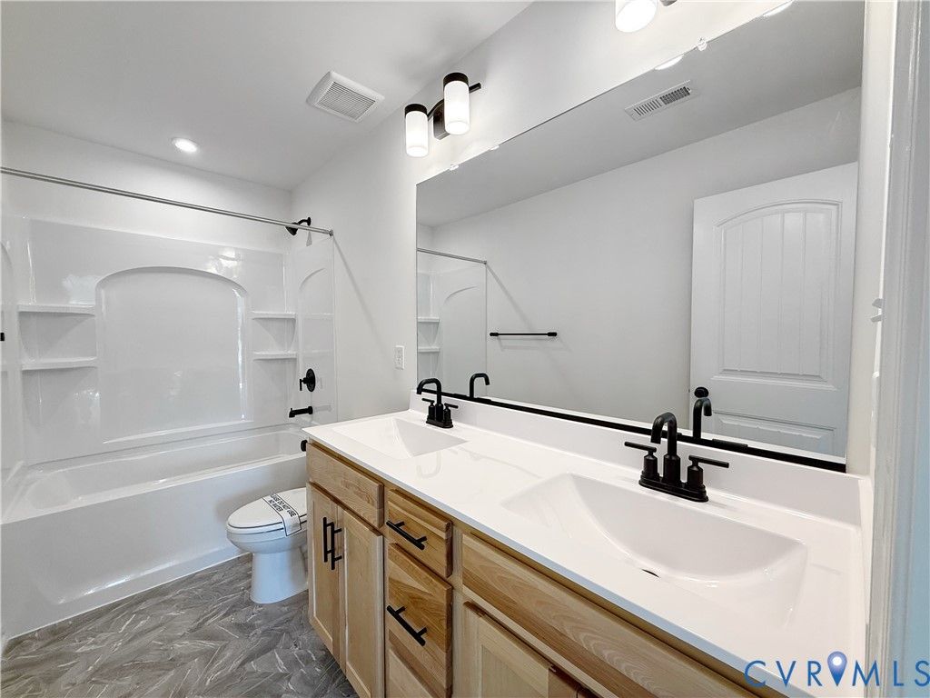 This home is to be built! Welcome to easy, elevated living in Midlothian's The Cottages at Millwood! This beautifully designed Chamberlayne paired villa blends smart functionality with five bedrooms, two and a half baths, a one-car attached garage, and the convenience of a FIRST-FLOOR PRIMARY bedroom. The welcoming foyer leads to a beautifully designed kitchen featuring a center island, quartz countertops, a walk-in pantry, and stainless steel appliances, perfect for everyday living and entertaining. The dining area flows into the spacious family room, creating a warm and inviting atmosphere. The first-floor primary suite offers everyday convenience and privacy, while upstairs you'll find four additional bedrooms perfect for guests, hobbies, or a home office. An unfinished storage area provides plenty of room for seasonal items or future customization. This villa is designed for comfort, style, and flexibility, all in a charming cottage setting in a highly sought-after Midlothian location.