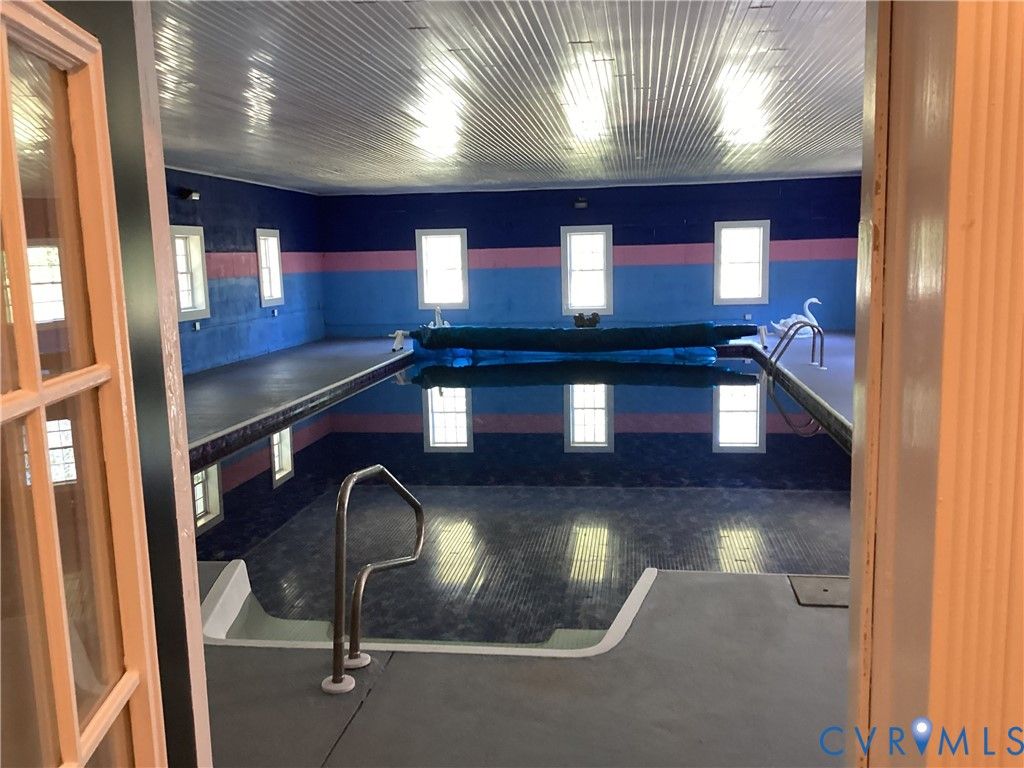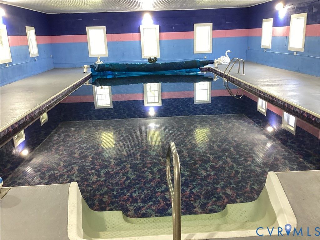 Custom-built home on 12 private acres in Prince George County offering flexible living and extensive amenities. Main level features a spacious living area with floor-to-ceiling stone gas fireplace, dining area, sitting room, and custom kitchen with Corian countertops, handcrafted cabinetry, bar seating, drop-in cooktop, wall oven, and dishwasher. Separate ensuite wing includes 2 bedrooms and 2 full baths, private deck access, and independent HVAC"”ideal for multi-generational living or guests. Property includes a 20x40 enclosed indoor pool with solar heating, adjacent fitness area, and full bath. Additional features: mudroom, butler's pantry, laundry closet, multiple storage closets, and attached 2-car garage with automatic doors. Primary suite includes large closet space and access to full bath. Office with private exterior access and nearby full bath with handicap-accessible features. Exterior improvements include concrete driveway, carport, outdoor lighting, generator hookup, dual electrical panels, utility building (Quonset hut style), and partially completed cinder block structure.